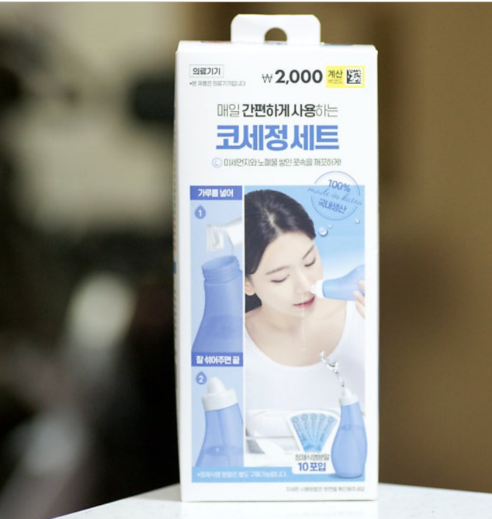 1. 가격 및 구성: 단돈 2,000원에 코세척기 본체와 식염분말 10포가 들어있어서 가성비가 아주 뛰어나요.