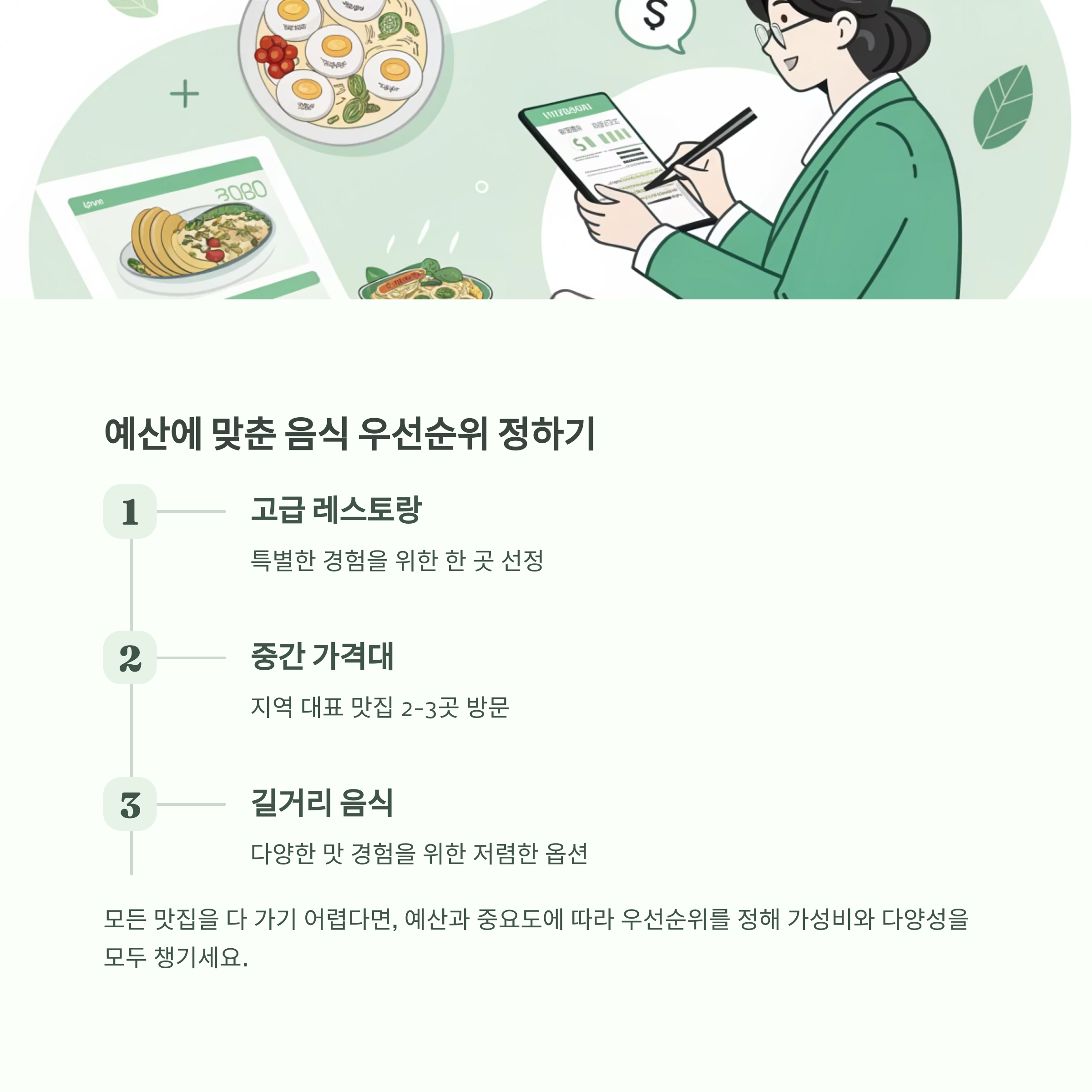 모든 맛집을 다 가기 어렵다면, 예산과 중요도에 따라