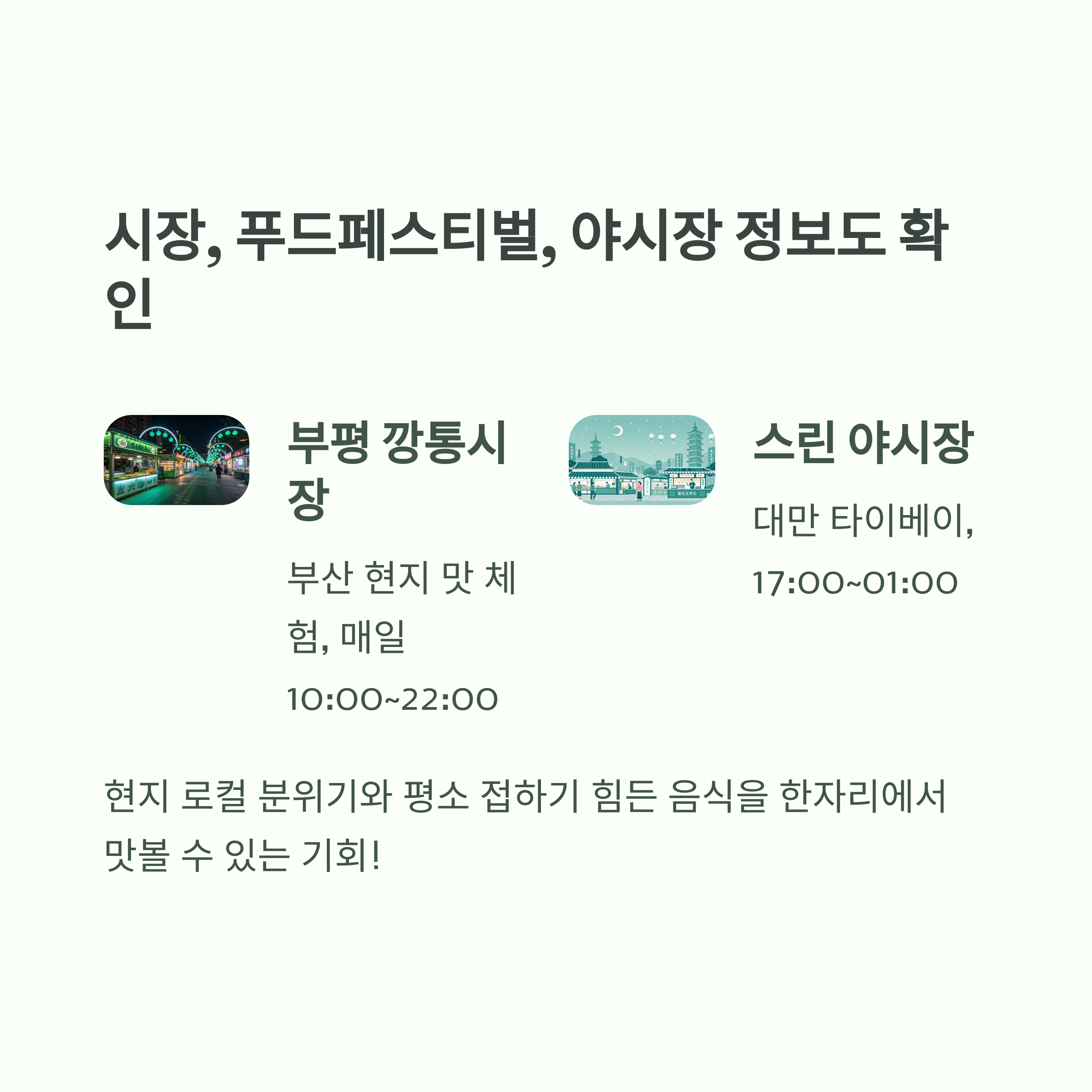 시장, 푸드페스티벌, 야시장 정보도 확인