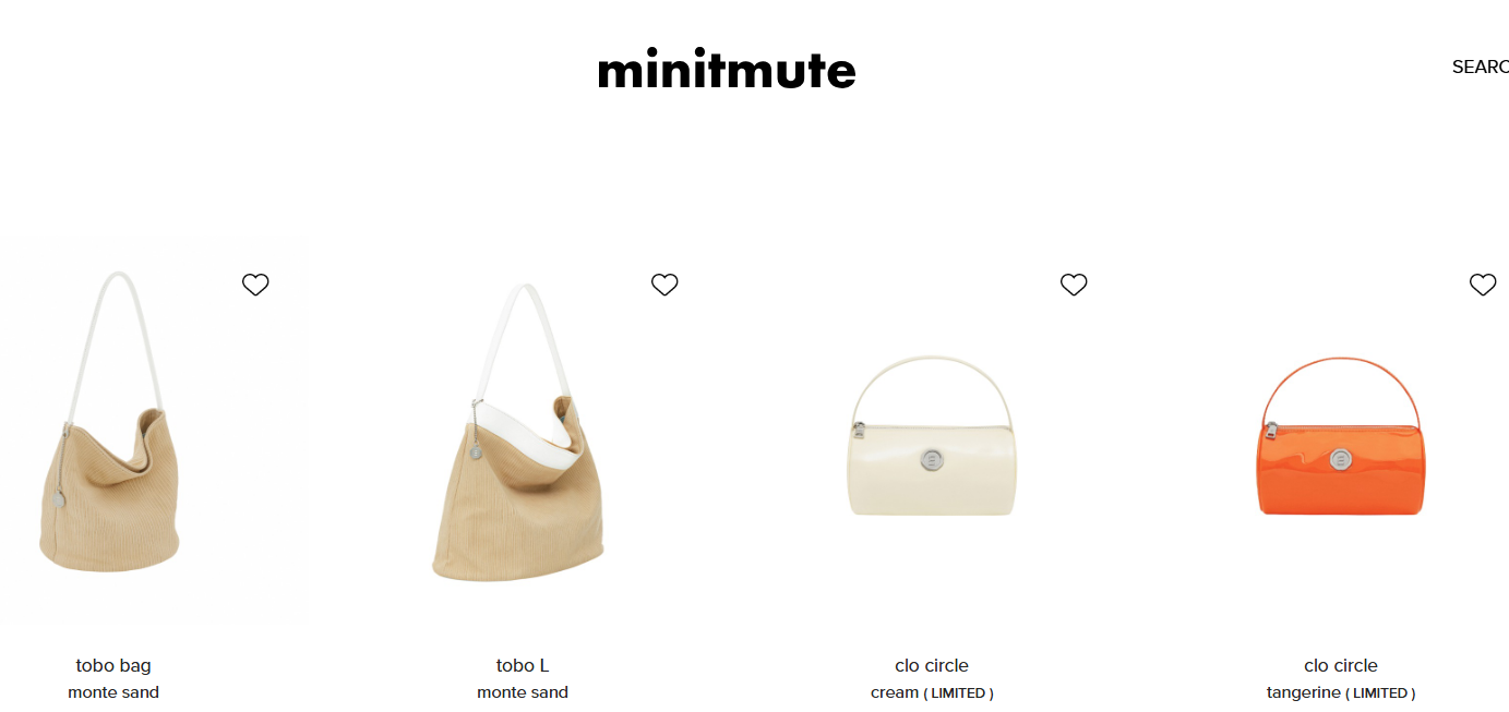 - 트렌디하고 실용적인 미니백: 2024년 하반기부터 2030 여성들에게 특히 사랑받는 국내 패션 잡화 브랜드 미닛뮤트의 대표 미니백이에요.