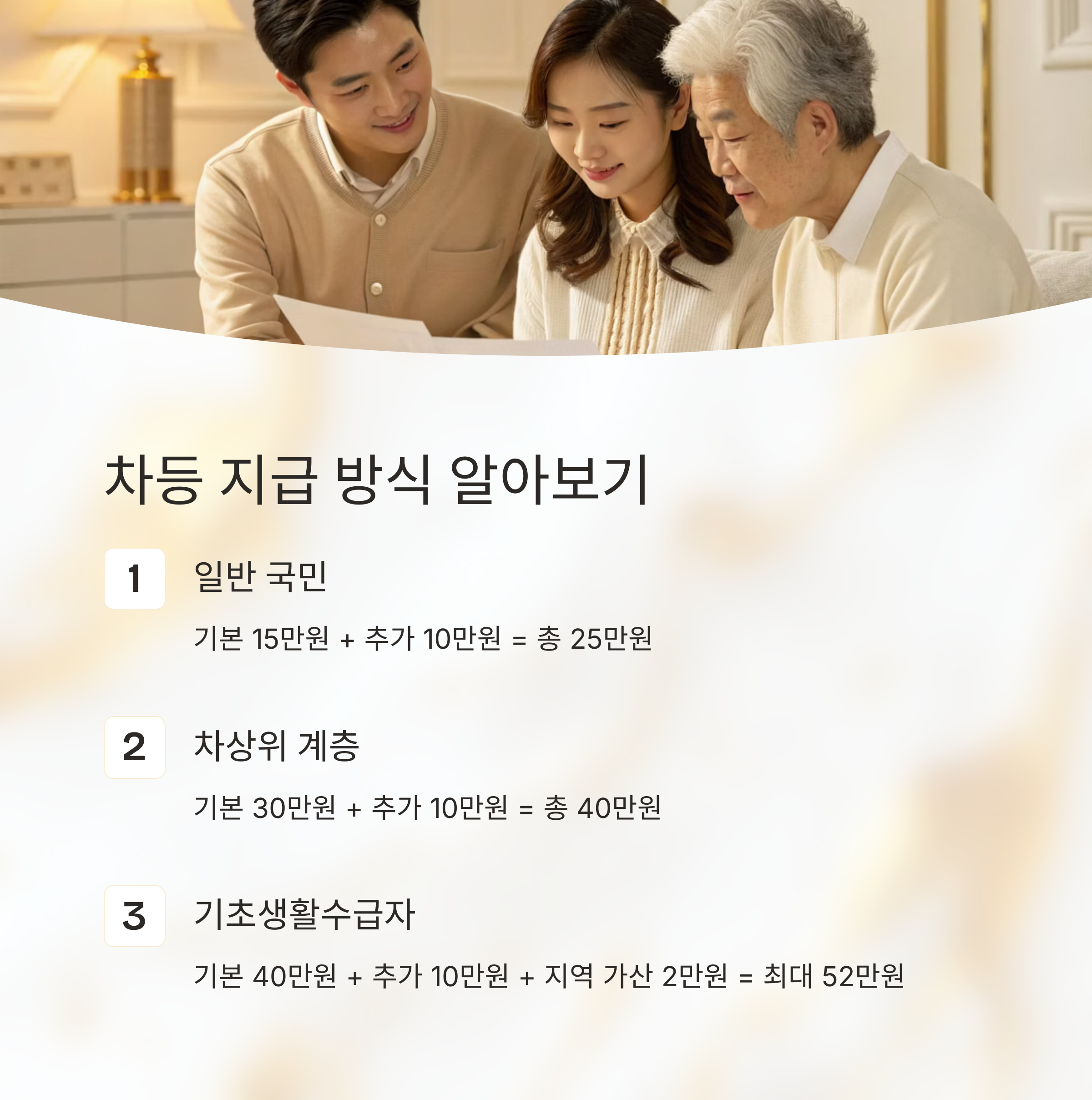 이번 정책은 ‘1인당 동일 지급’이 아닙니다.