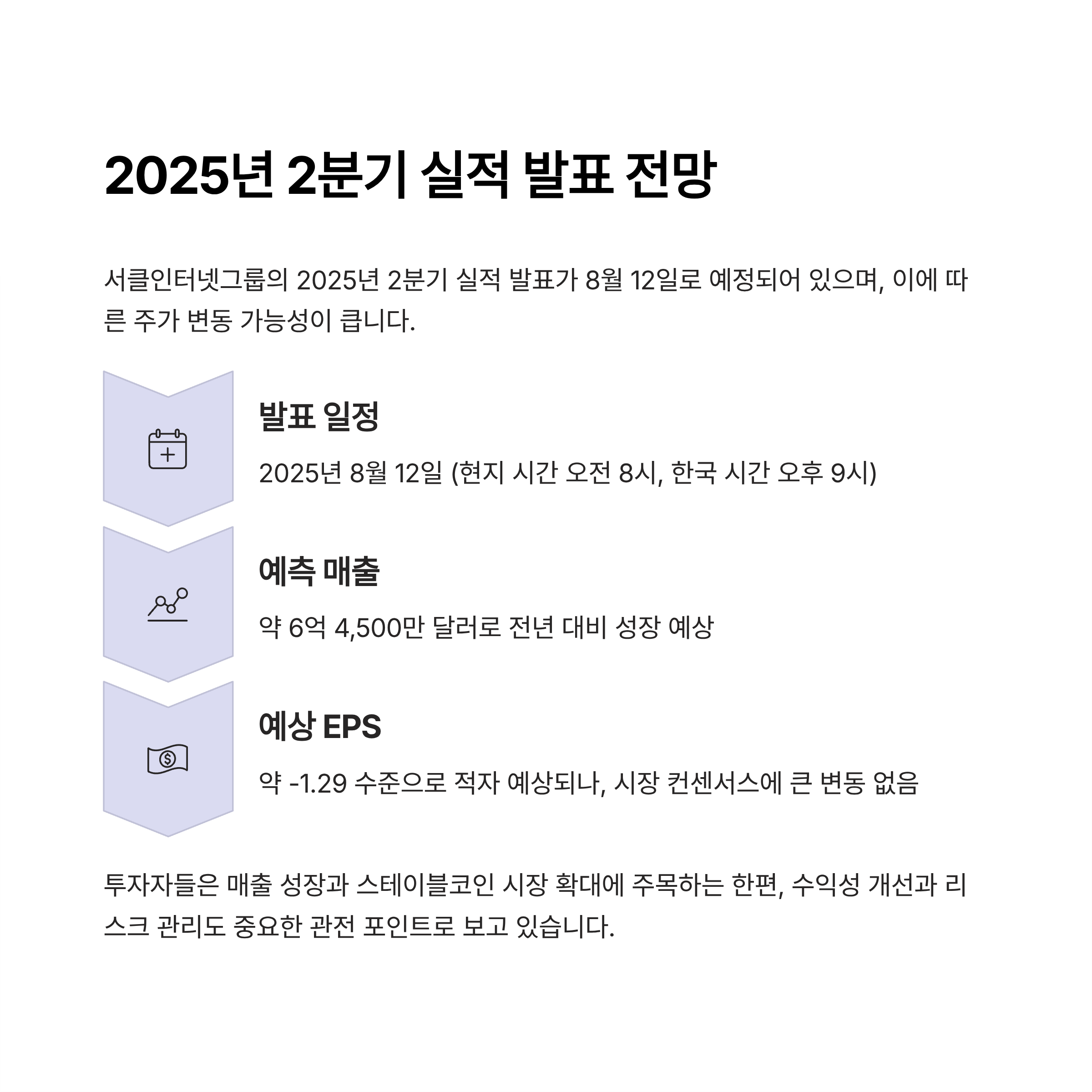- 8월 12일에 2025년 2분기 실적 발표 예정으로, 투자자와 애널리스트들의 관심이 집중되고 있습니다.