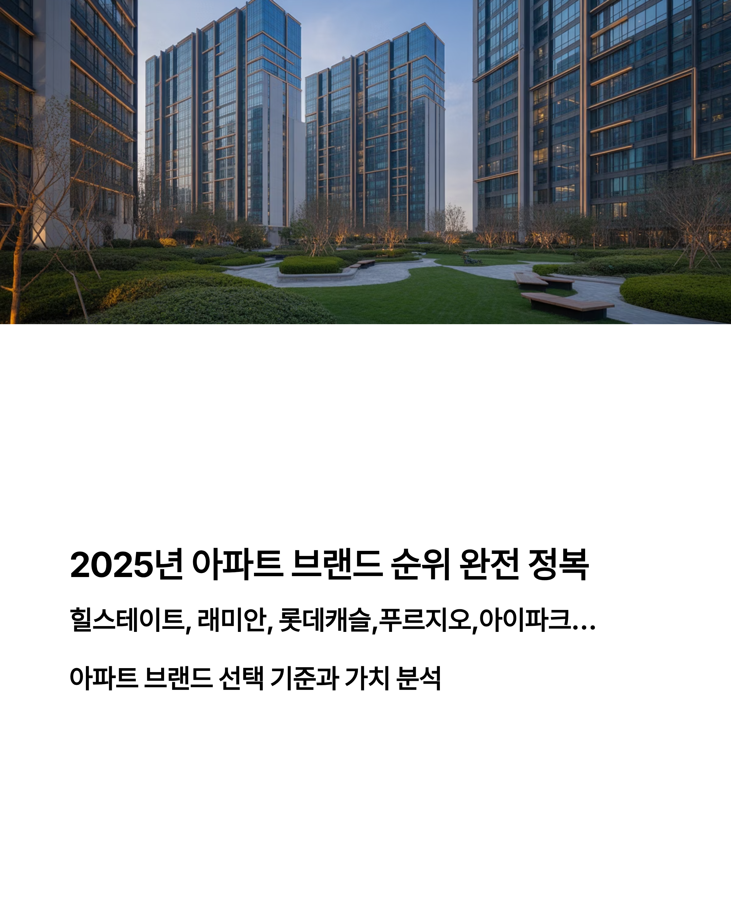 2025년 현재 아파트 시장에서 브랜드의 가치는 더 이상 외관 디자인이나 고급스러움에만 국한되지 않습니다. 주거 만족도, 자산 가치, 하자 보수, 커뮤니티 시설, 그리고 향후 재건축 가능성까지 포괄하는 총체적 주거 상품의 기준이 되고 있습니다.