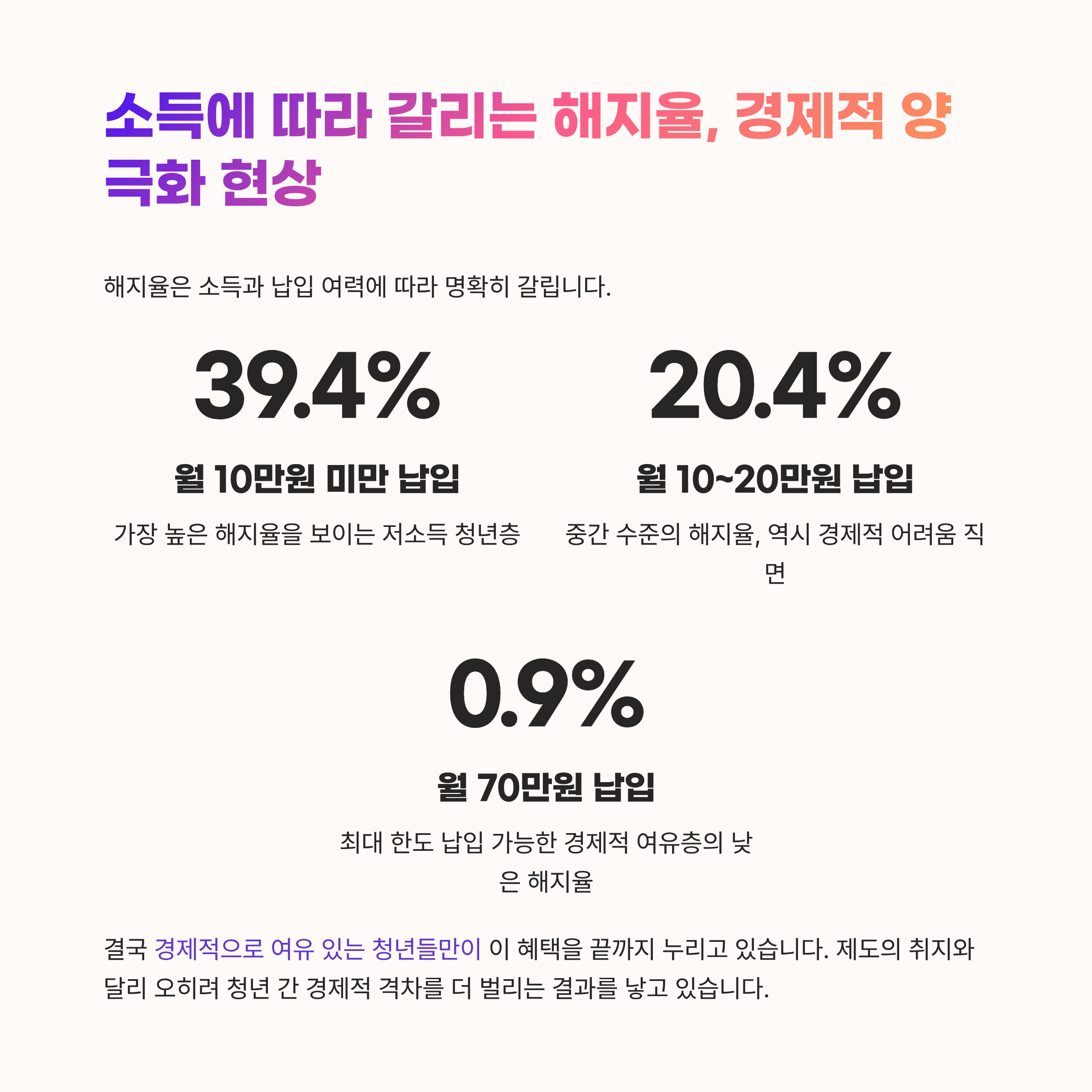 데이터를 살펴보면 해지율은 소득 및 납입 여력에 따라 극명히 갈리는 모습입니다.