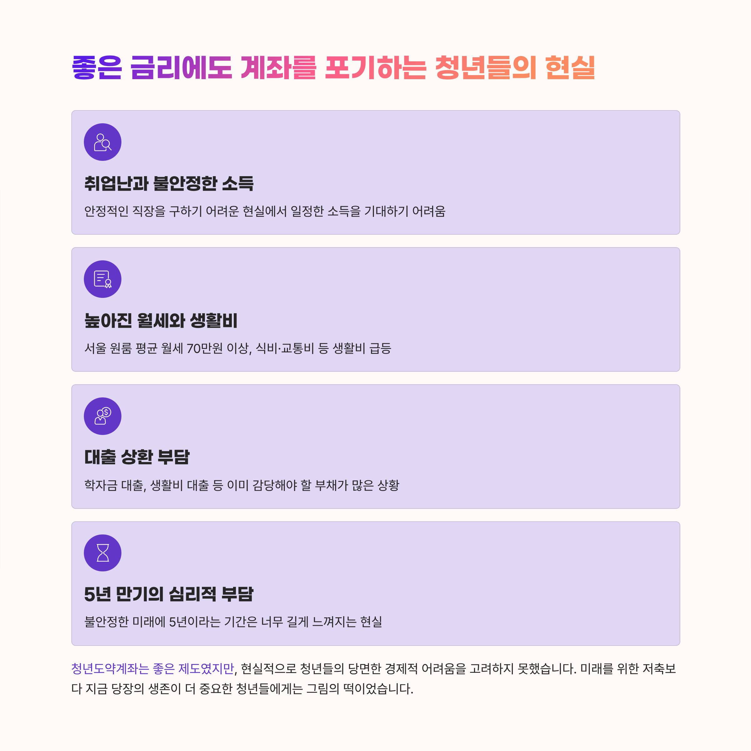 - 취업난으로 인한 불안정한 소득