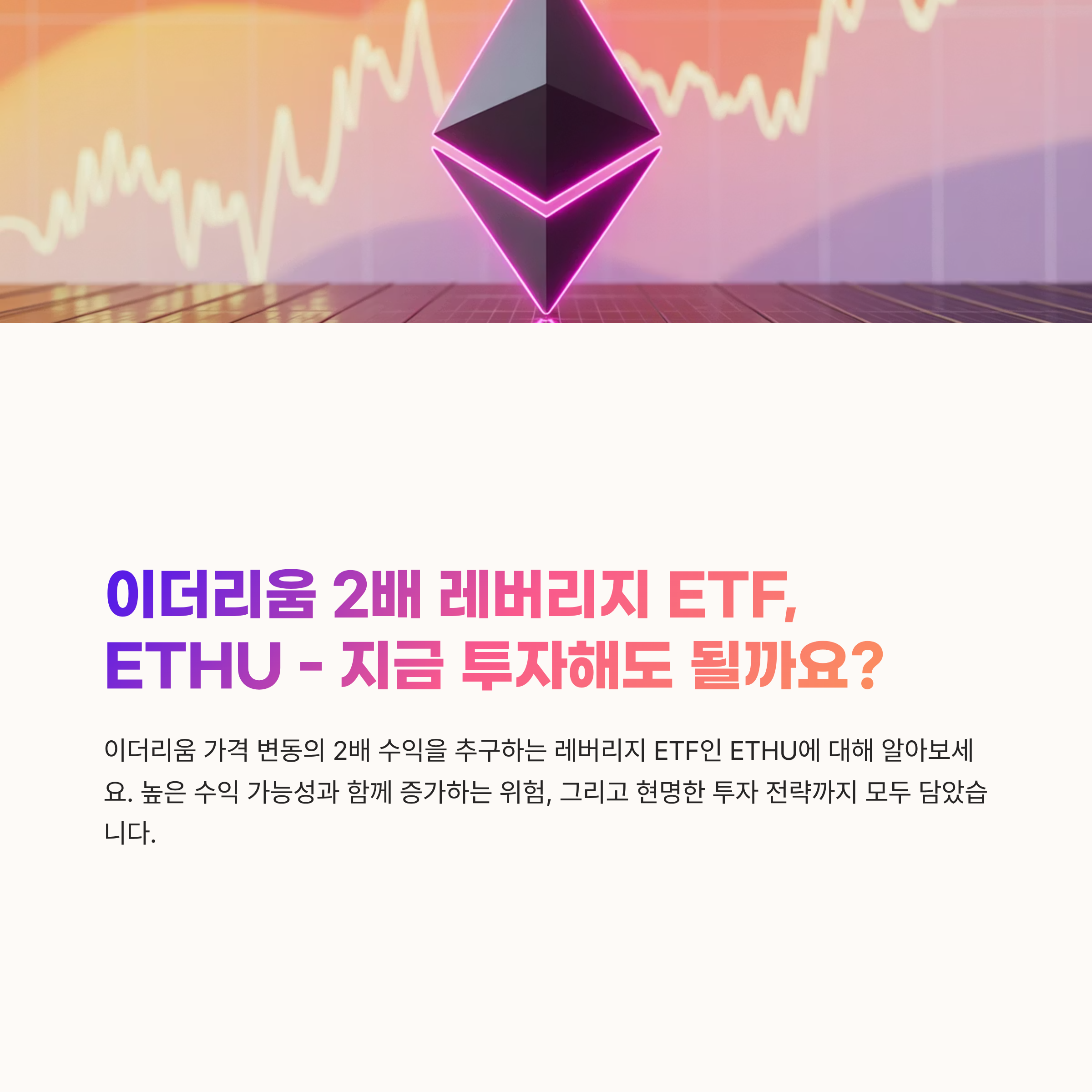 ETHU는 이더리움의 일간 가격 변동을 두 배로 추종하는 레버리지 ETF로 단기 투자와 기술적 분석, 분산 투자 전략을 병행해야 하는 고위험 금융상품입니다. 2025년 현재 강한 상승세와 시장 관심을 받고 있지만, 변동성 확대와 손실 위험에도 신중을 기할 필요가 있습니다. 중장기 투자보다는 단기 트레이딩과 적극적 포트폴리오 관리를 원하는 투자자에게 적합합니다.