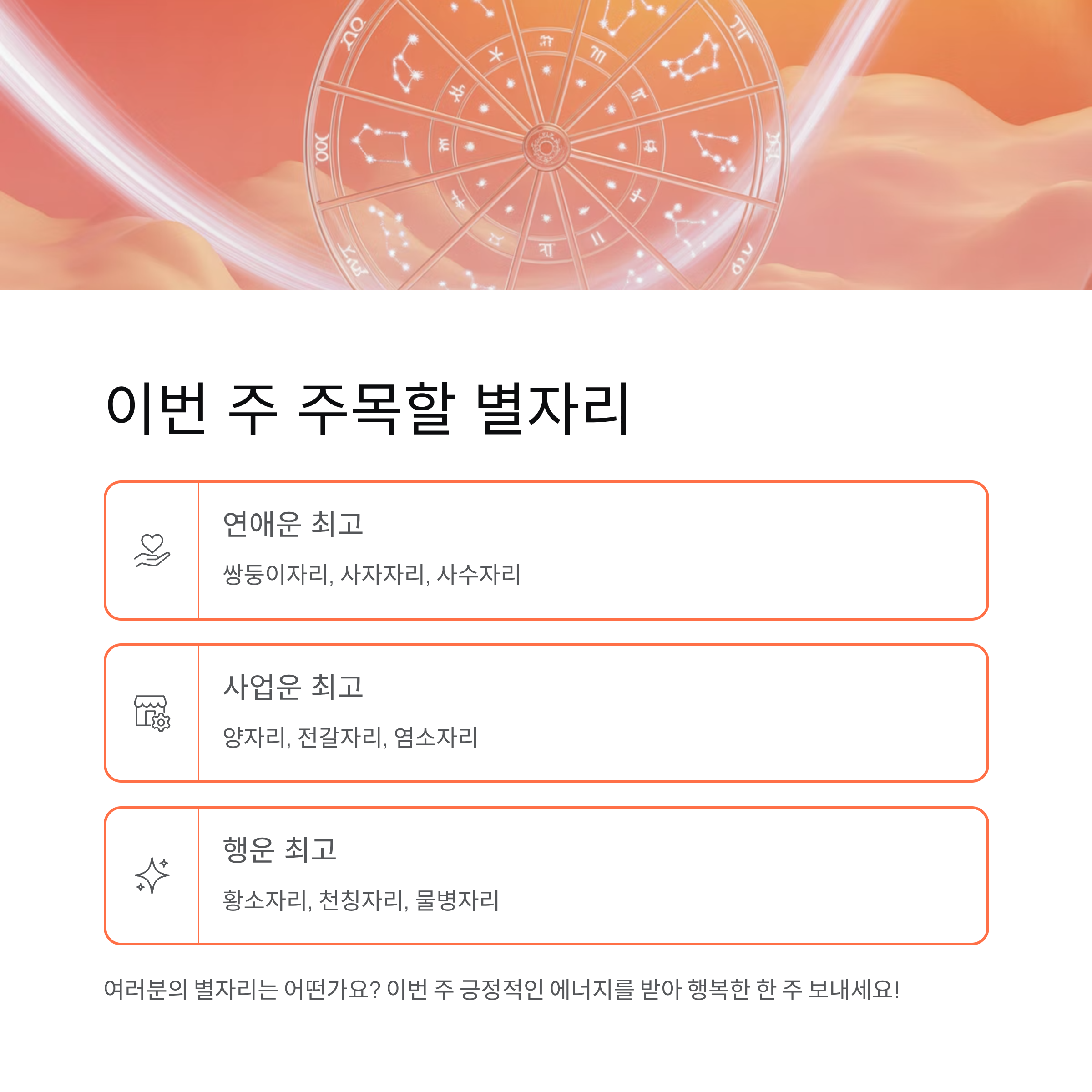 이번 주 사업운이 강한 대표 별자리입니다.