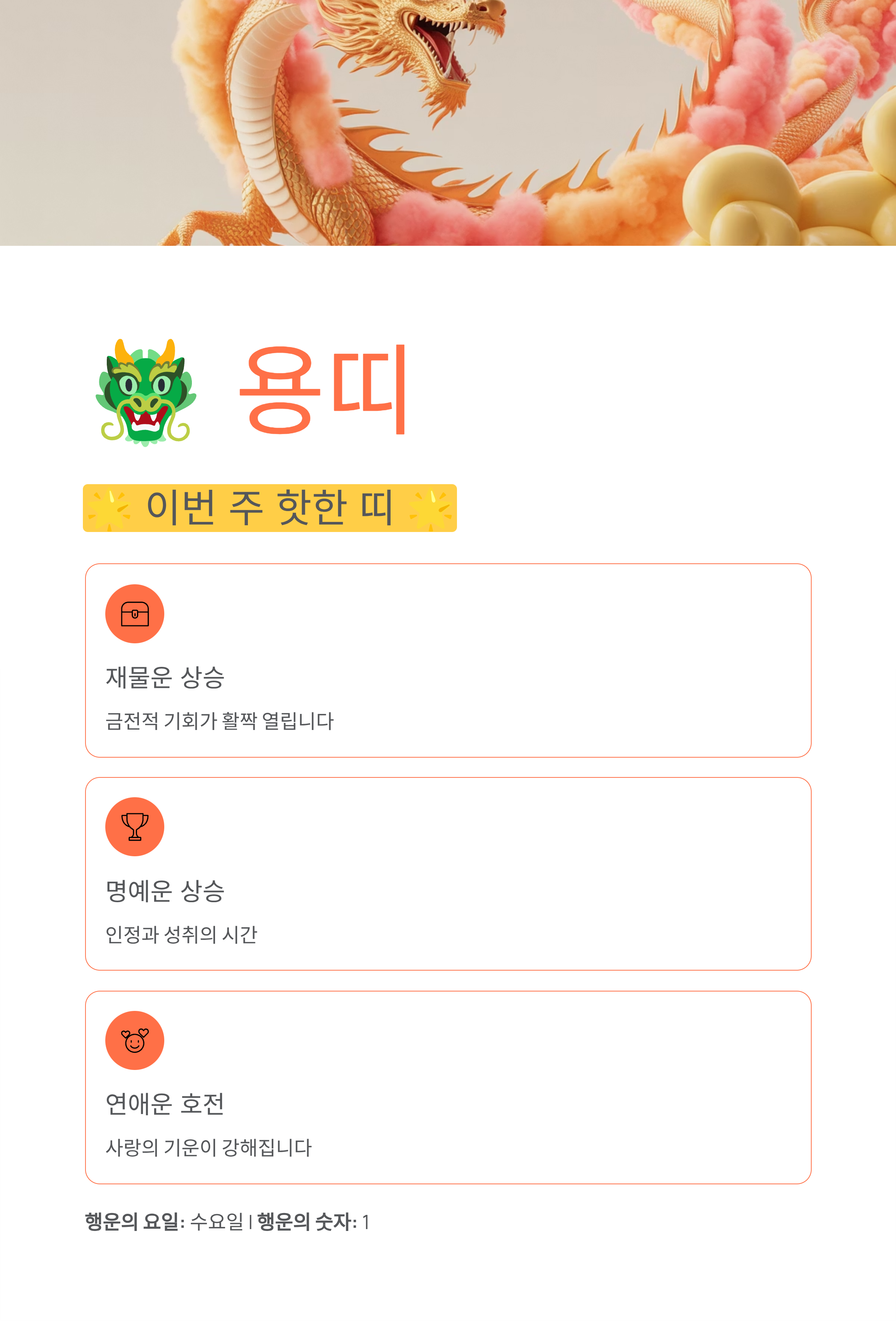 이번 주 가장 핫한 띠는 용띠로, 모든 면에서 상승운이 두드러지고