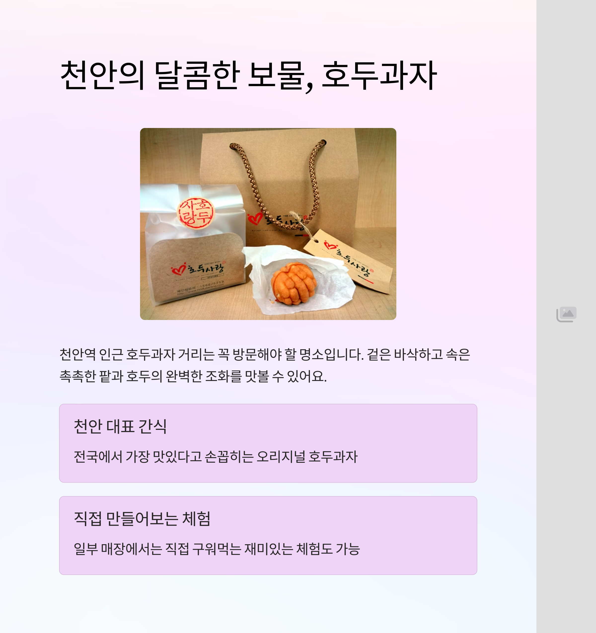 천안 대표 간식, 직접 구워먹는 호두과자 체험도 인기