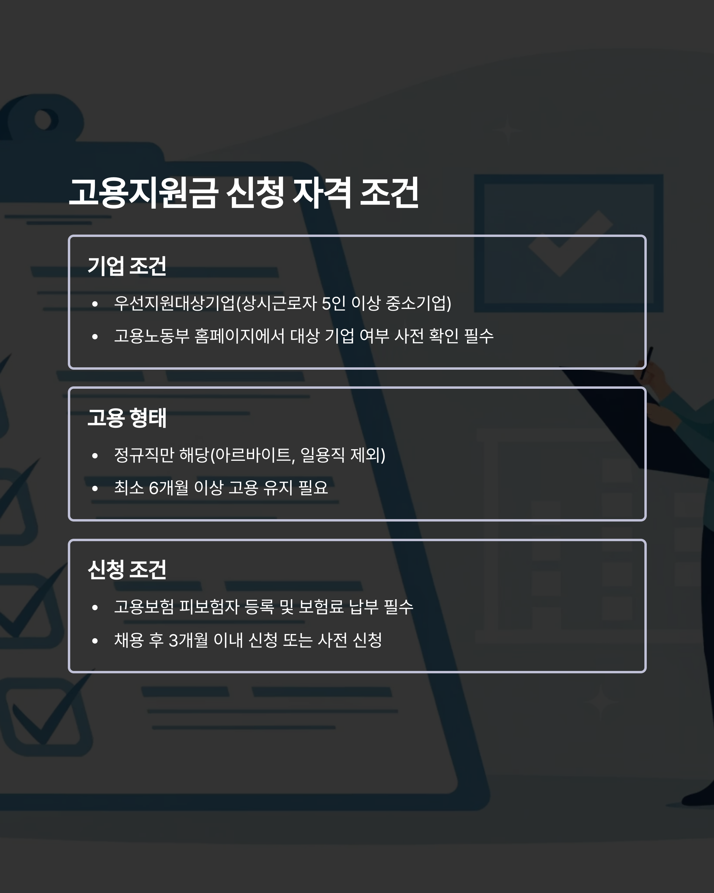 - 우선지원대상기업이어야 함 (상시근로자 5인 이상 중소기업)