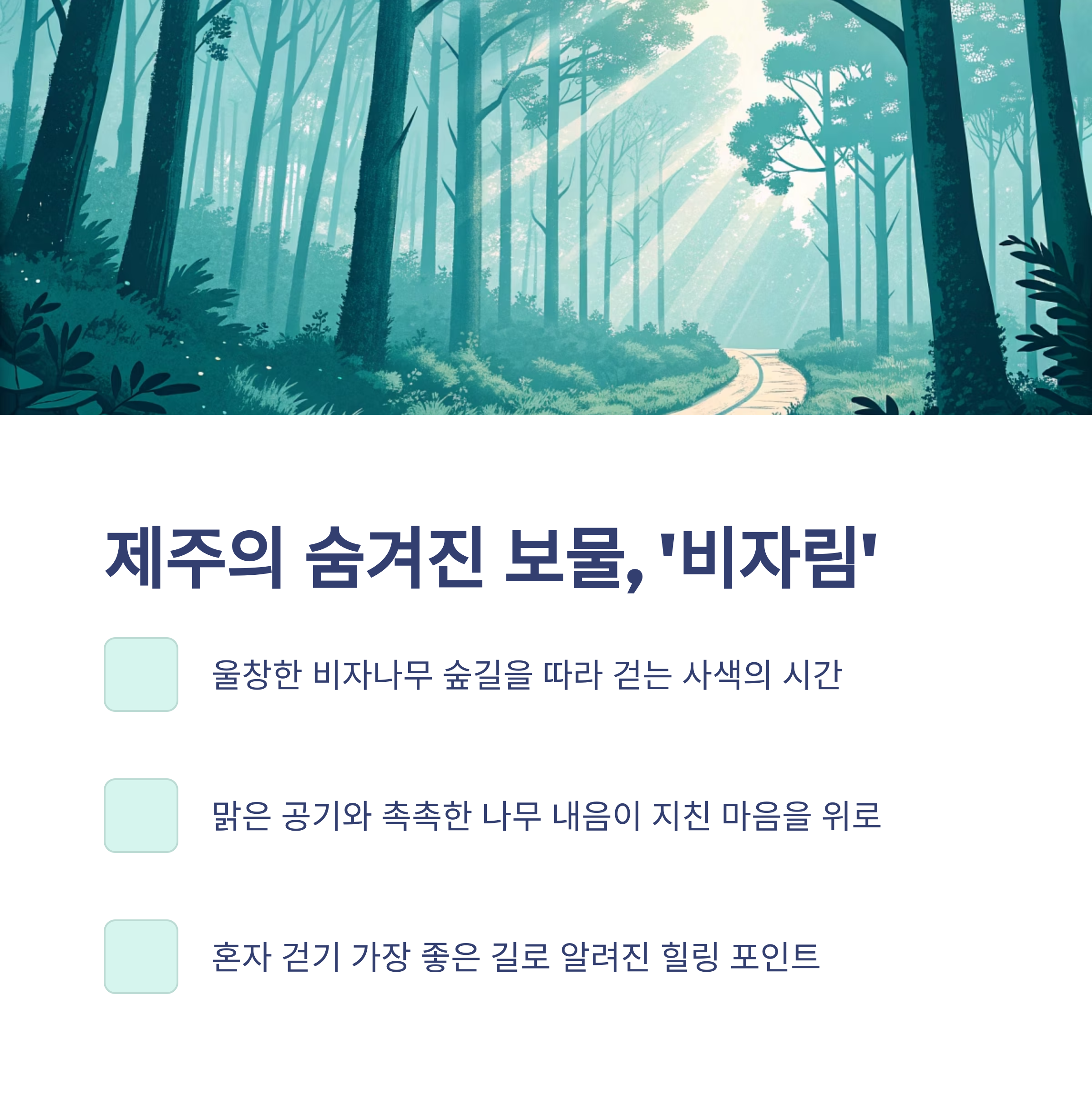 울창한 비자나무 숲길을 따라 걷다 보면 마치 숲 속에 숨겨진 시간 속을 거니는 기분이 듭니다.