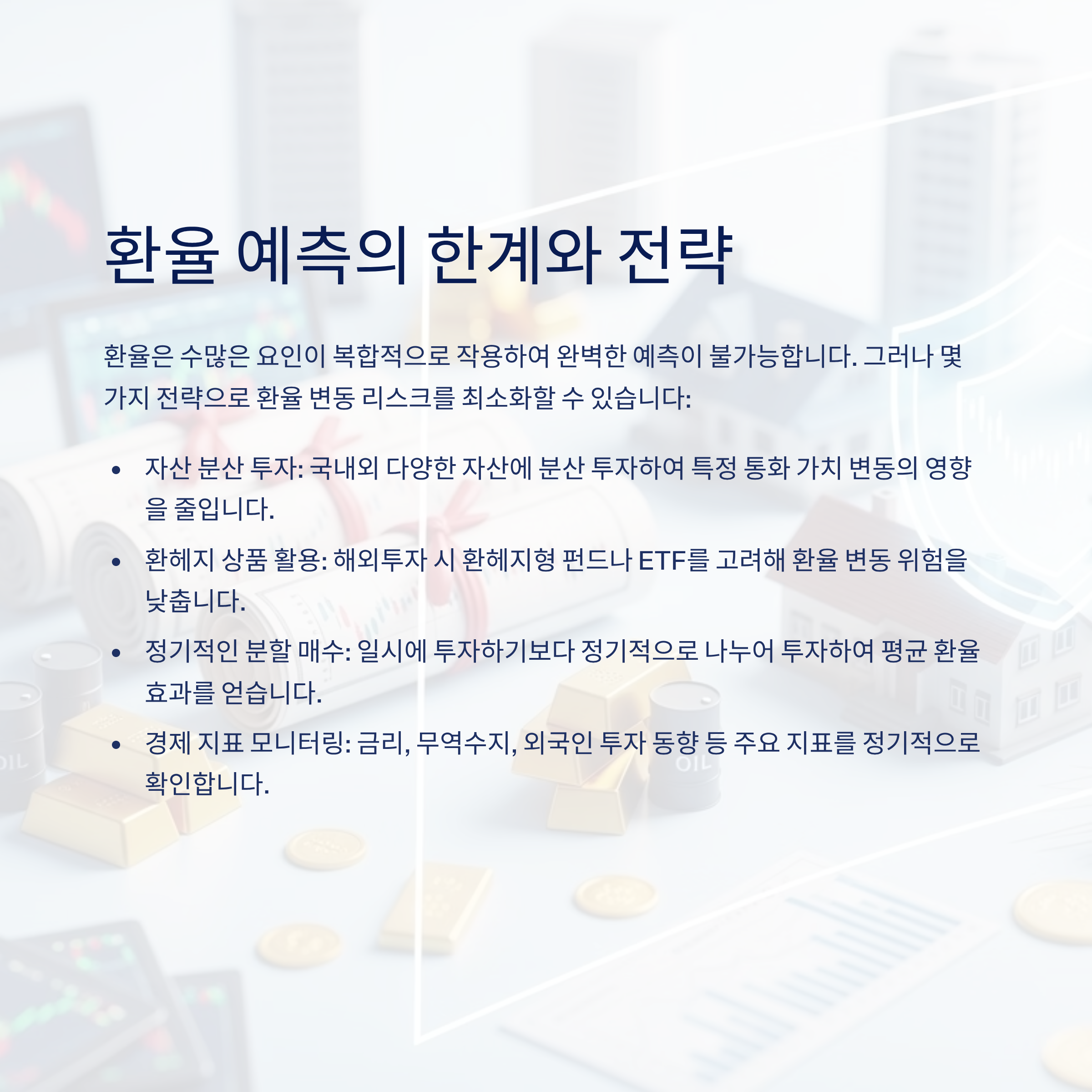 환율은 복합적인 요인들이 동시에 작용하기 때문에 완벽한 예측이
