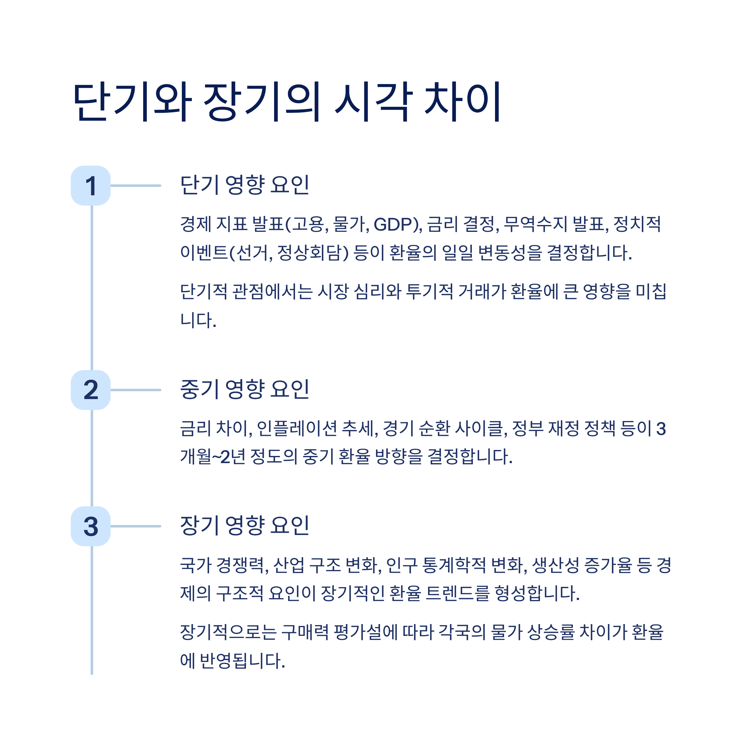 환율 변동을 크게 만듭니다. 그러나 장기적으로는 국가 경쟁력,
