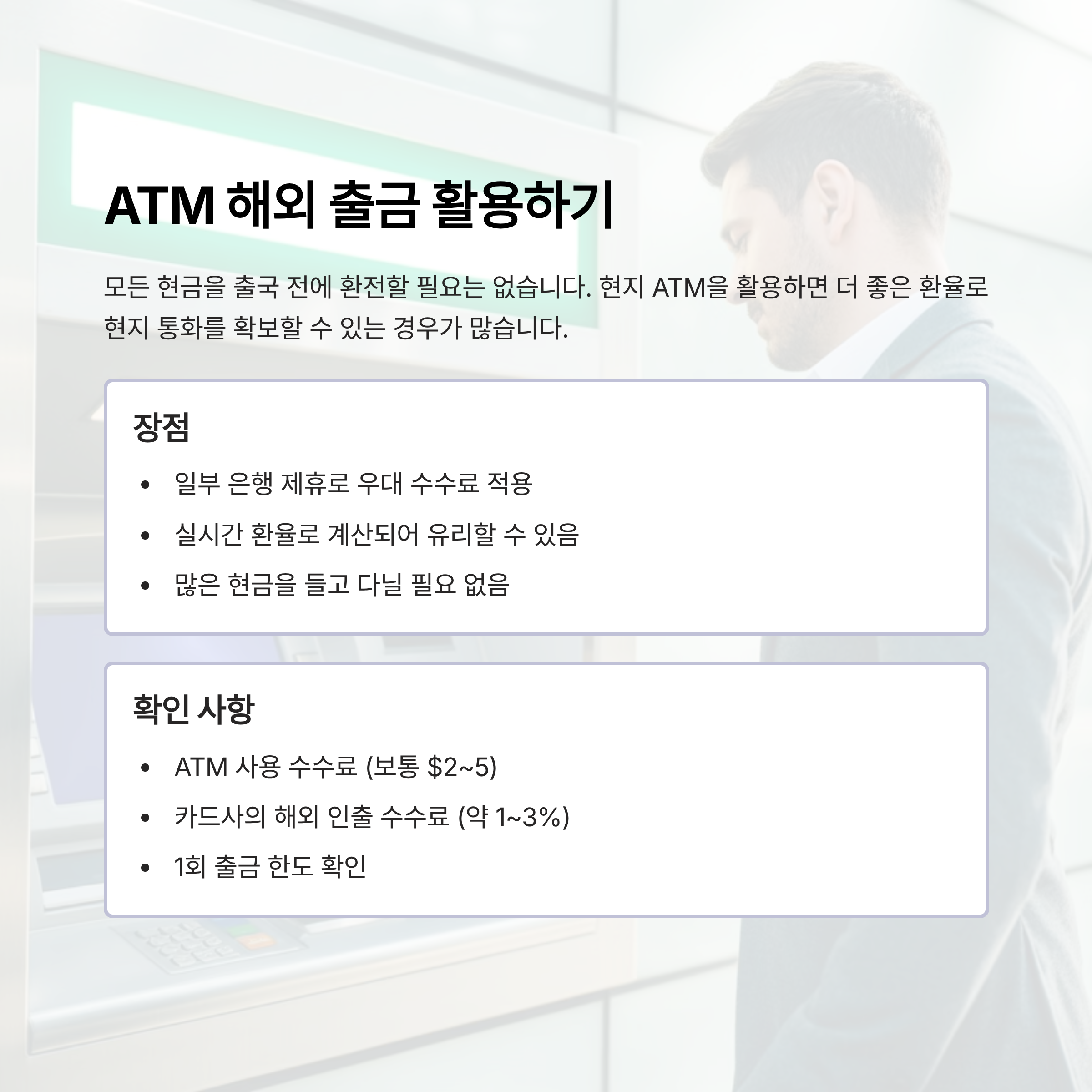 현지 ATM 출금은 일부 은행 제휴 서비스 덕분에 수수료가 낮을 수