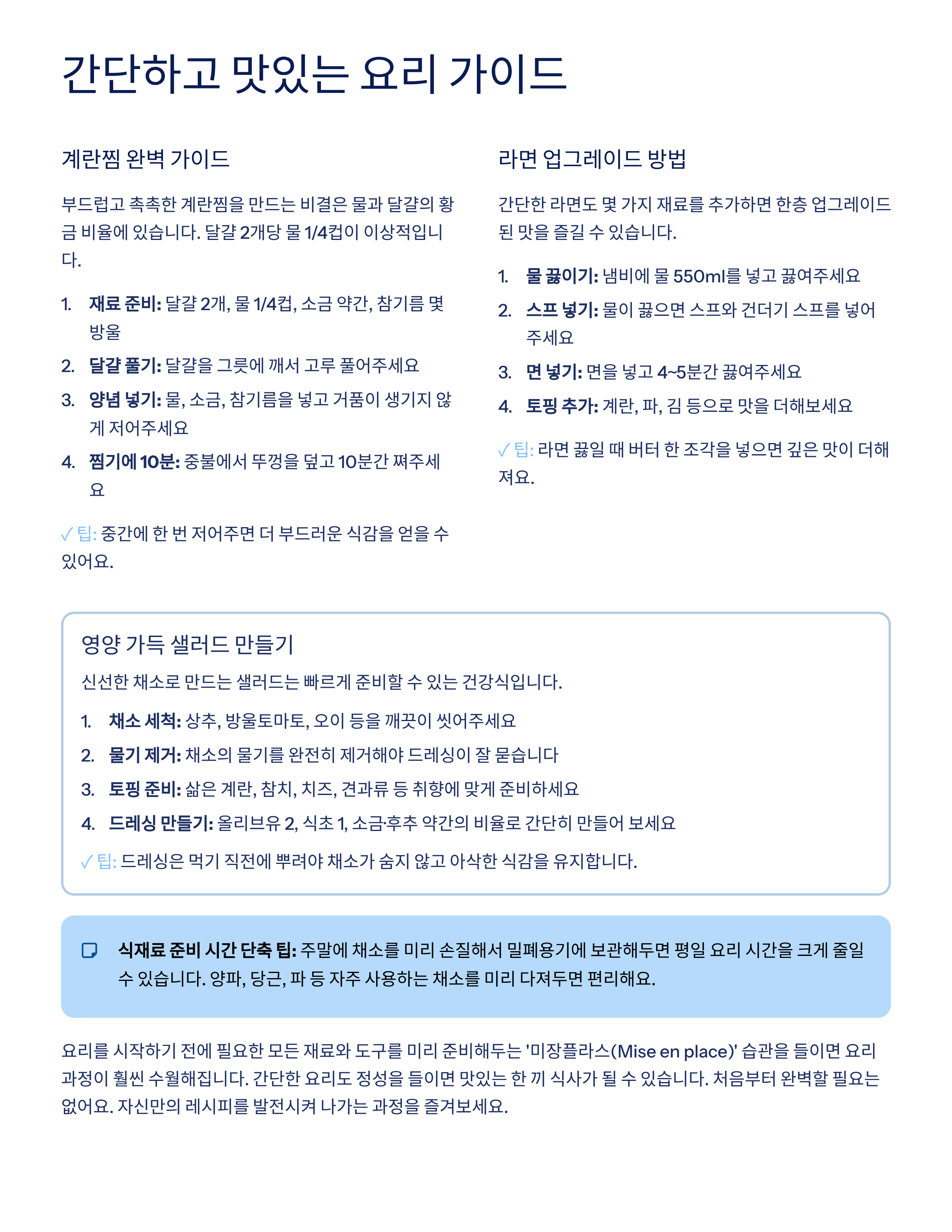 3. 주방 정리 루틴 → 설거지 → 싱크대 닦기 → 조리도구 제자리 → 쓰레기 정리