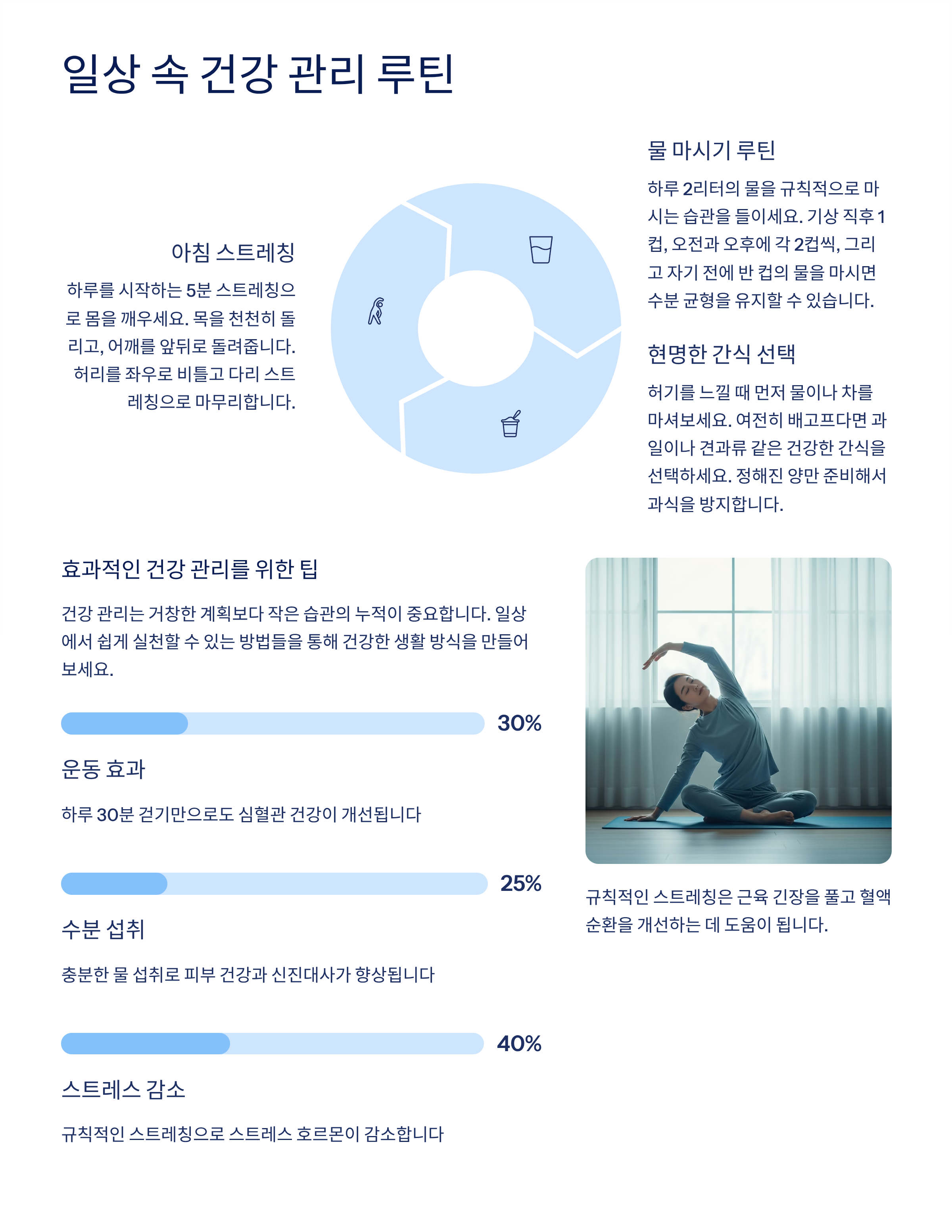 12. 물 마시기 루틴 → 기상 직후 1컵 → 오전·오후 각 2컵 → 자기 전 반 컵