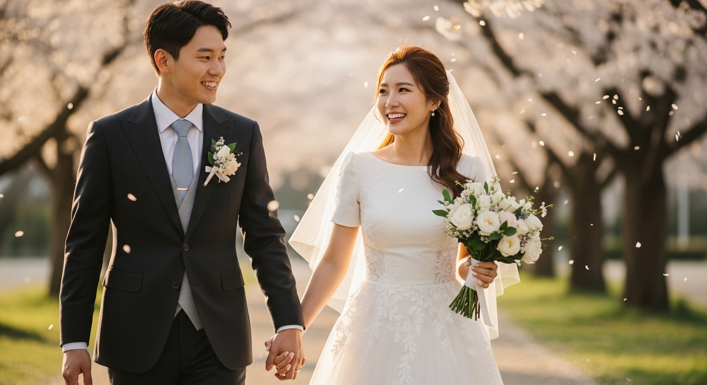 행복한 결혼 생활을 시작하는 신혼부부의 모습