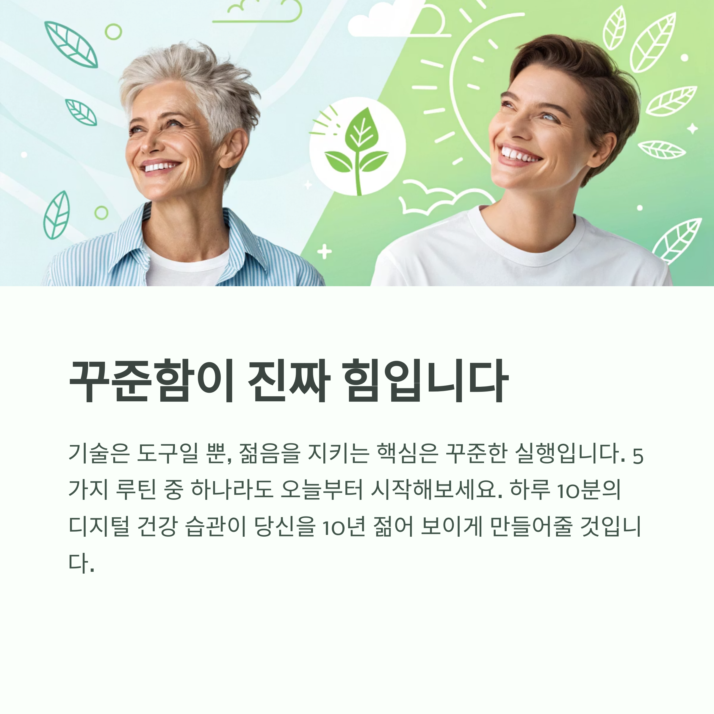 하루 10분의 디지털 건강 습관이 당신을 10년은 젊어 보이게 만들어줄 겁니다.