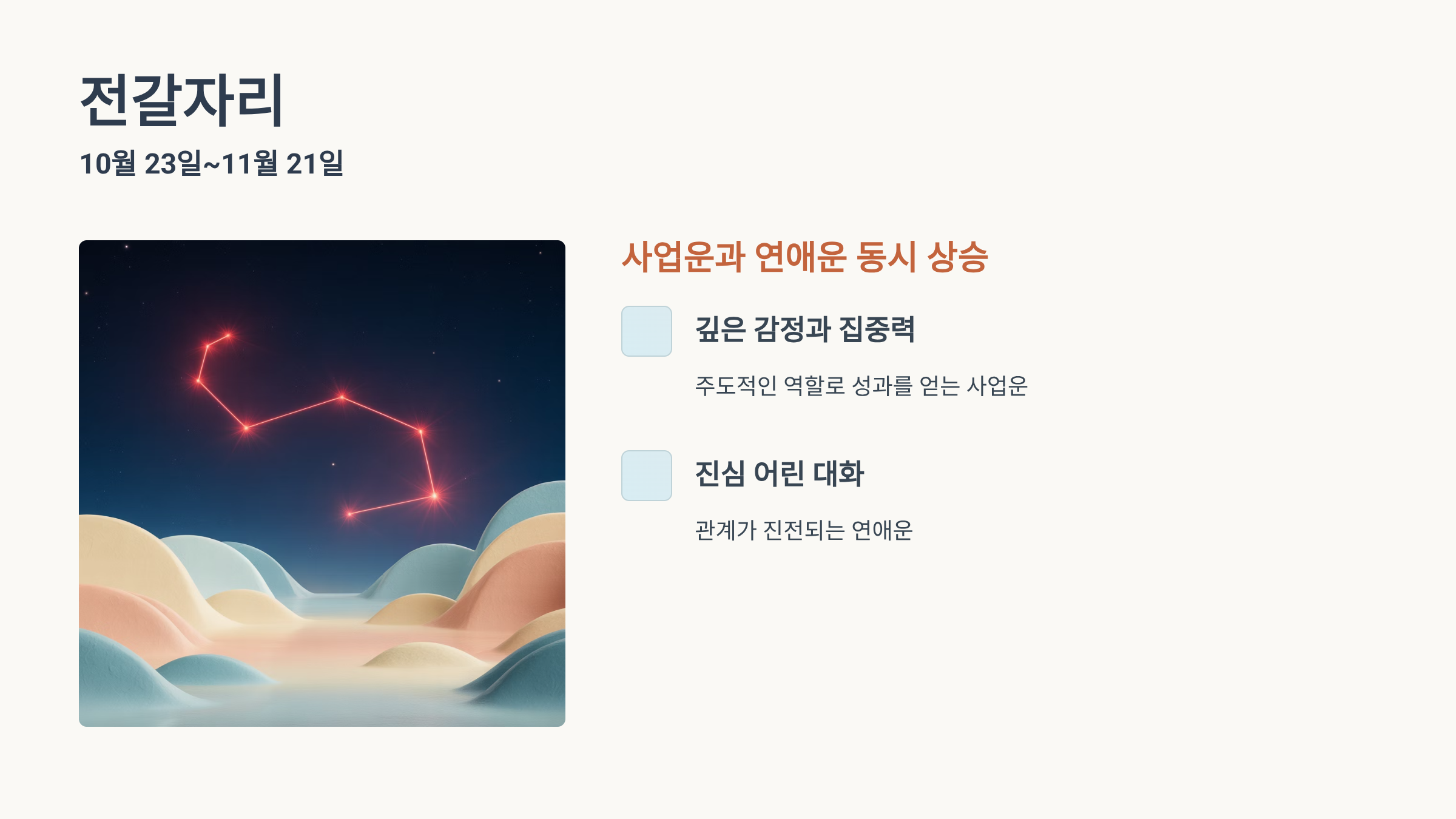 이번 주 사업운과 연애운이 동시에 상승하는 별자리입니다.