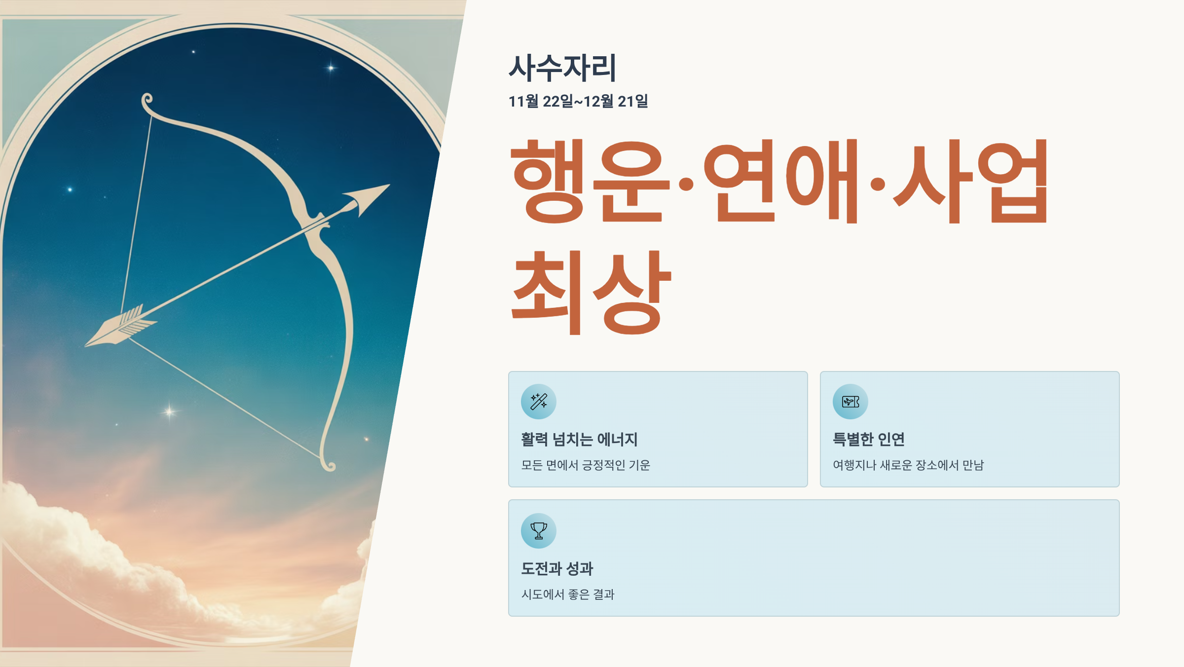 A4. 사수자리가 연애, 사업, 행운 모두에서 최고조에 있습니다.