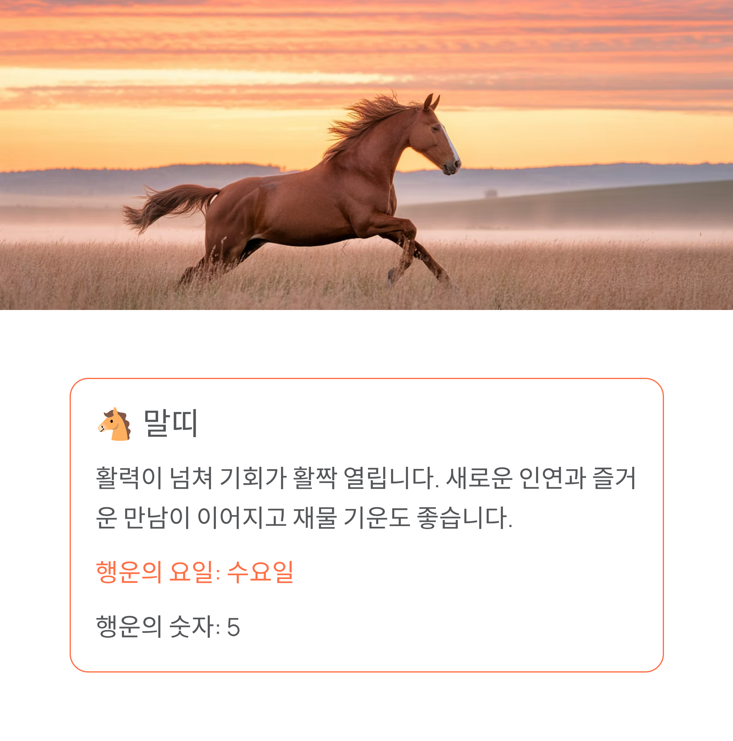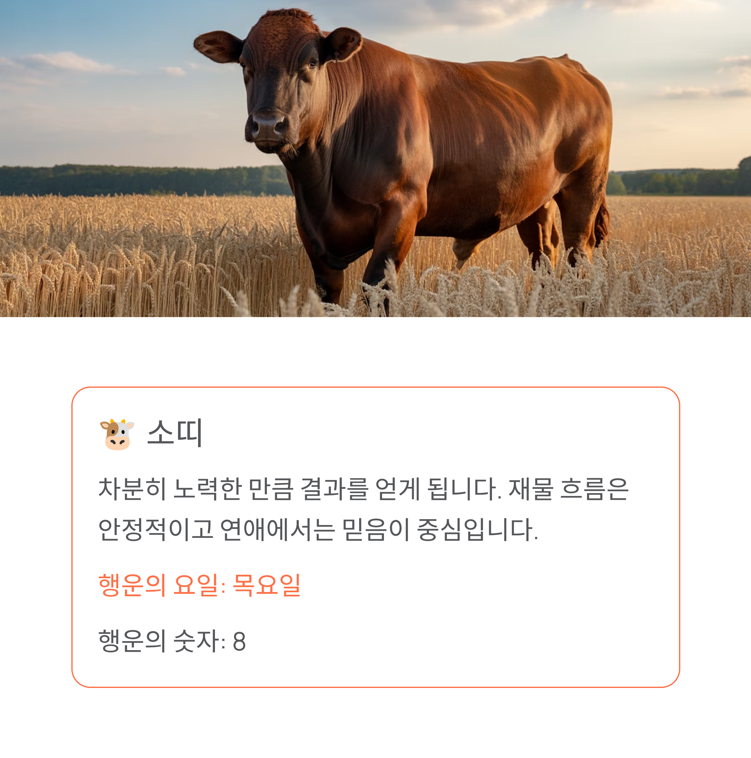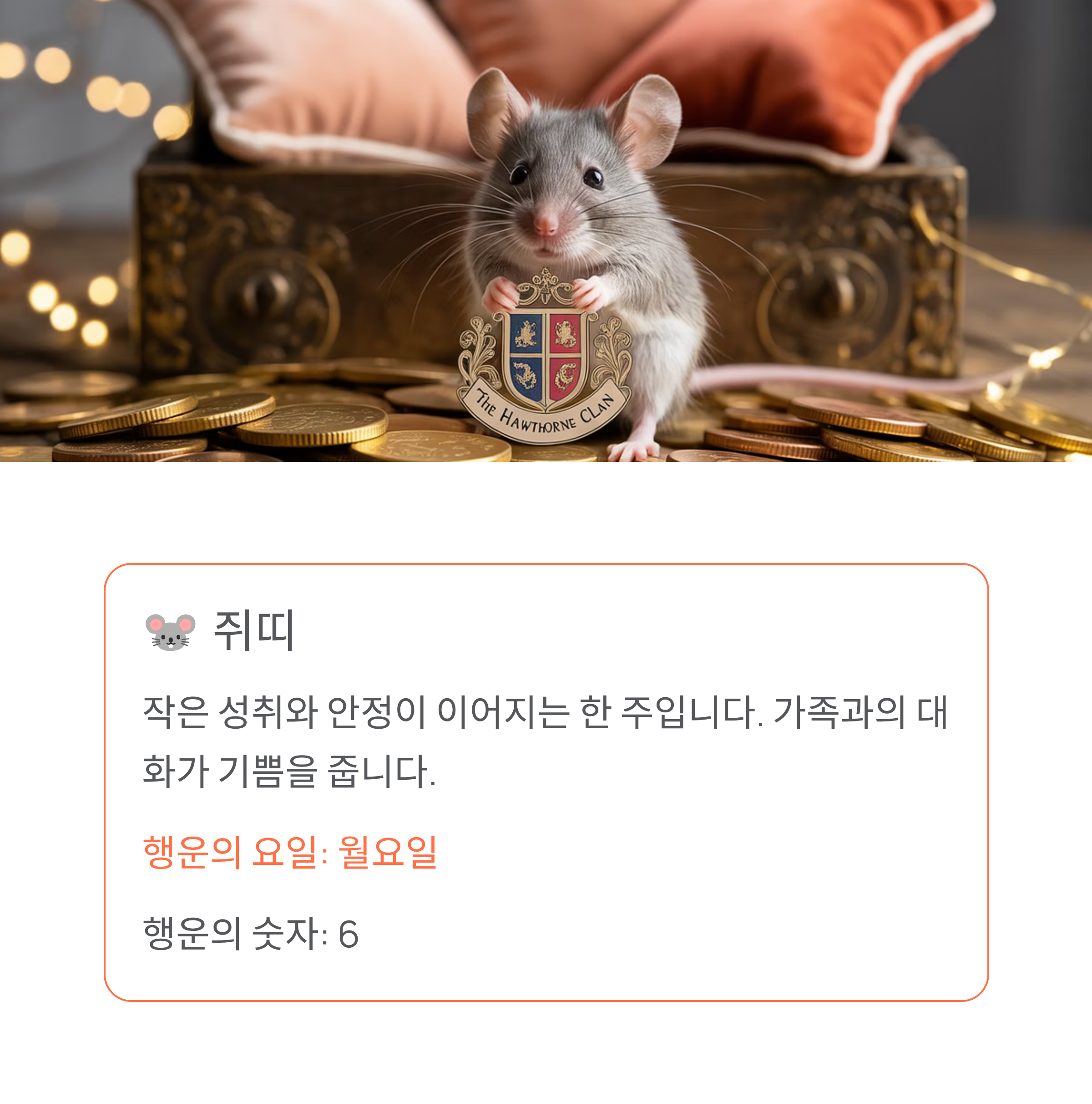 연애운과 재물운이 균형을 이루며 건강과 인간관계에서도 안정적인 기운이 흐릅니다.
