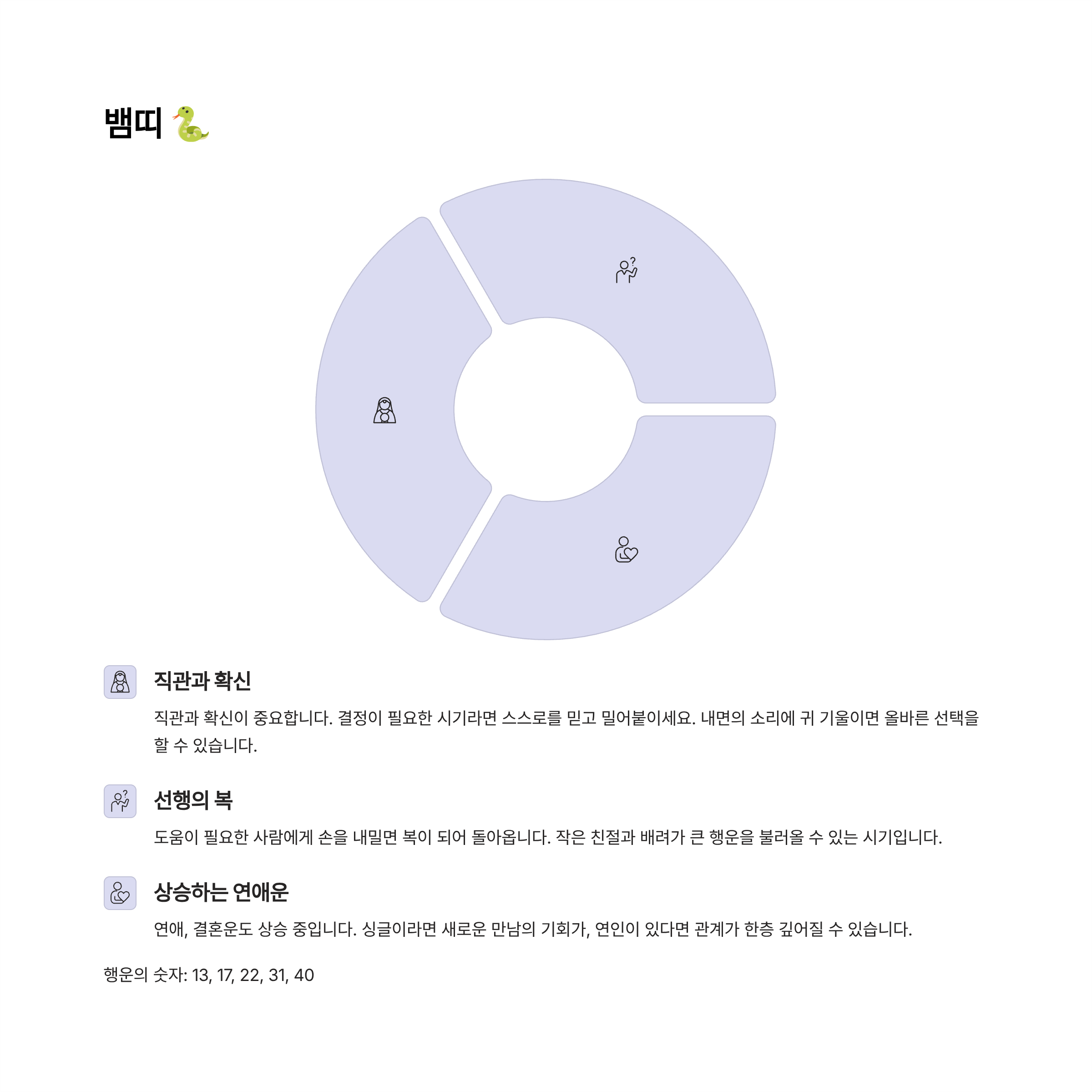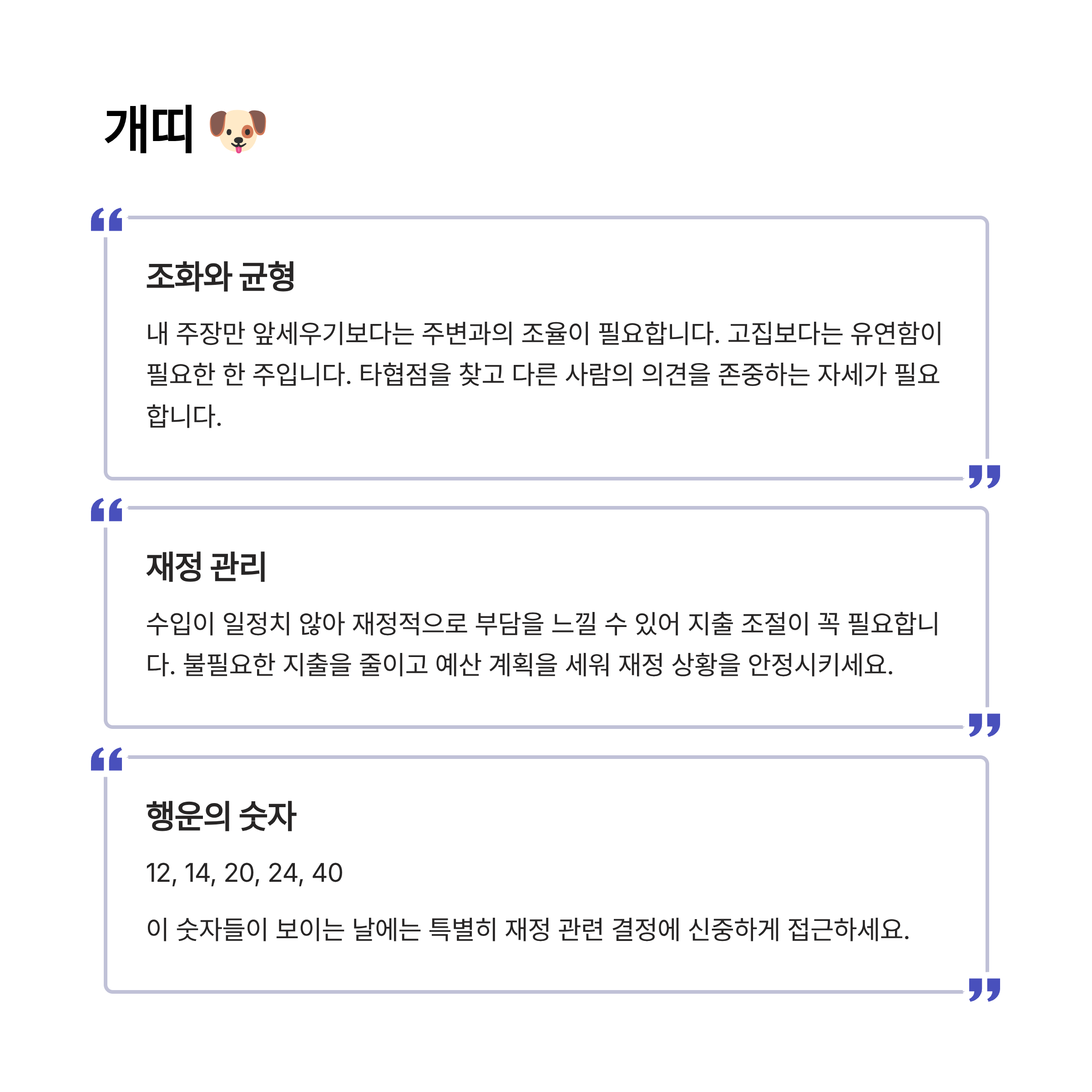 | 2위 | 토끼띠 🐰 | 기쁨 실현 + 금전운 안정 + 인간관계 심화 |