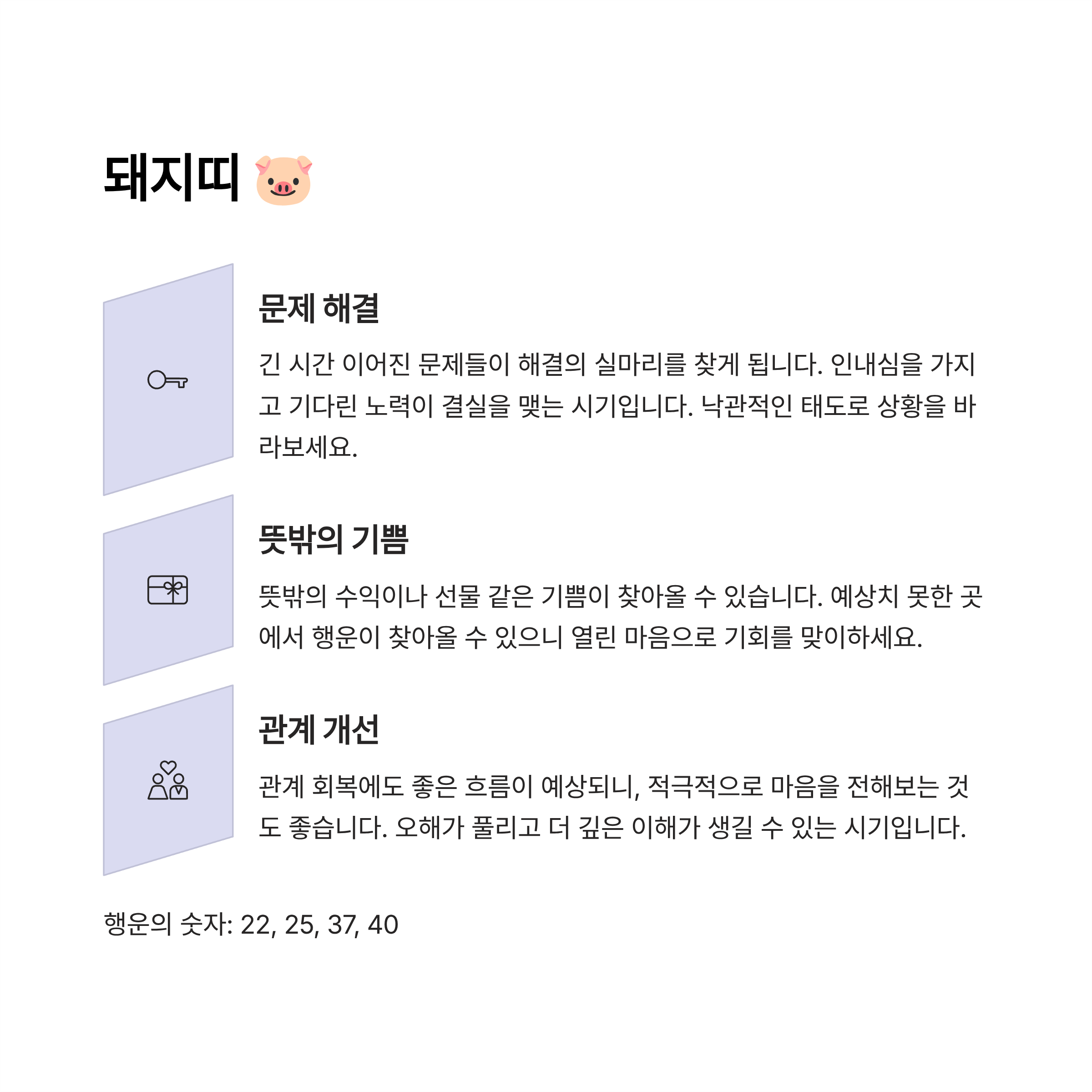 | 1위 | 돼지띠 🐷 | 난관 해결 + 뜻밖의 소득 + 인연 회복 기회까지 |