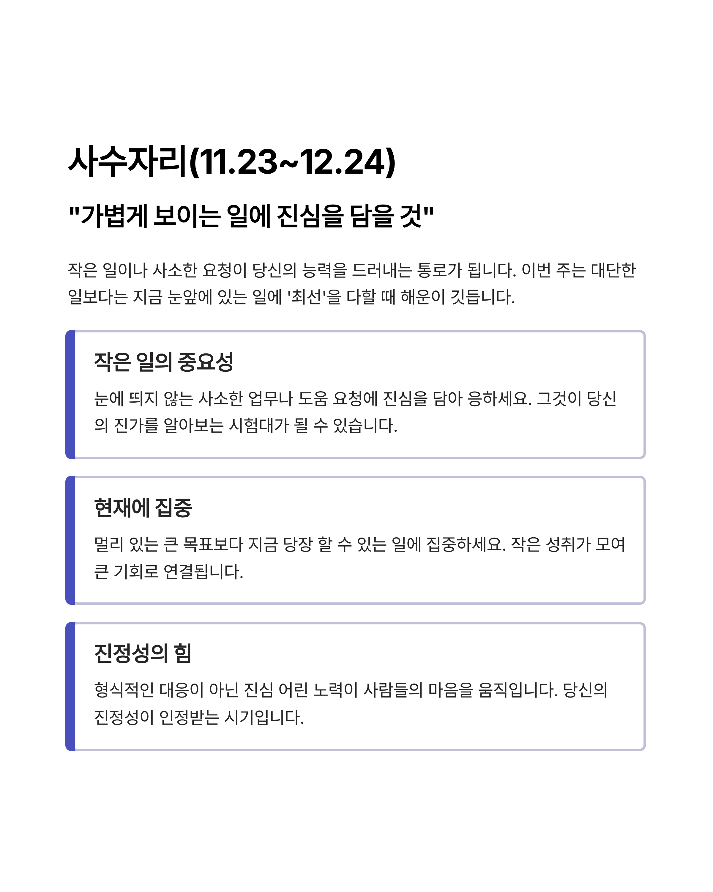 사수자리(11.23~12.24) – "가볍게 보이는 일에 진심을 담을 것"
