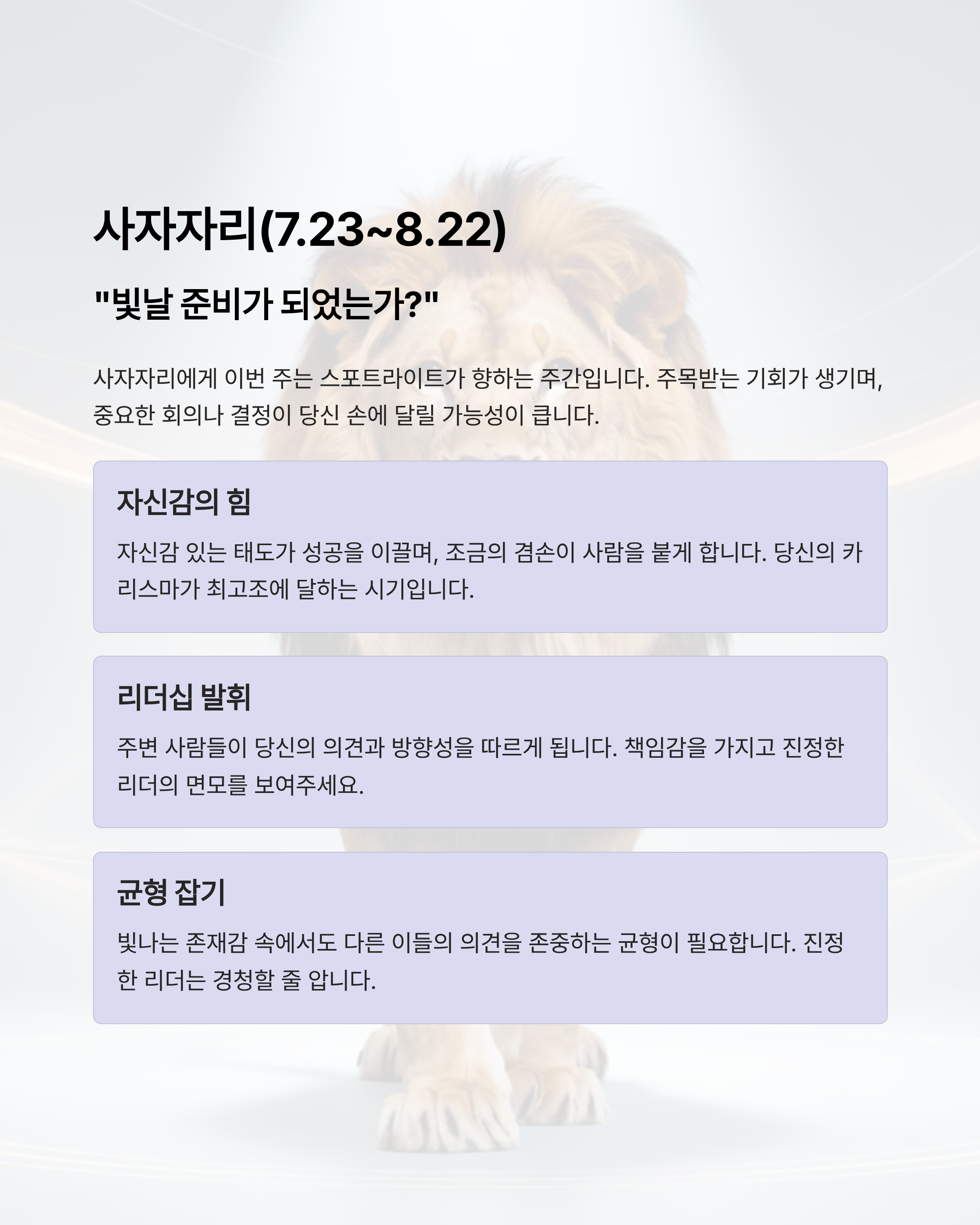 사자자리(7.23~8.22) – "빛날 준비가 되었는가?"