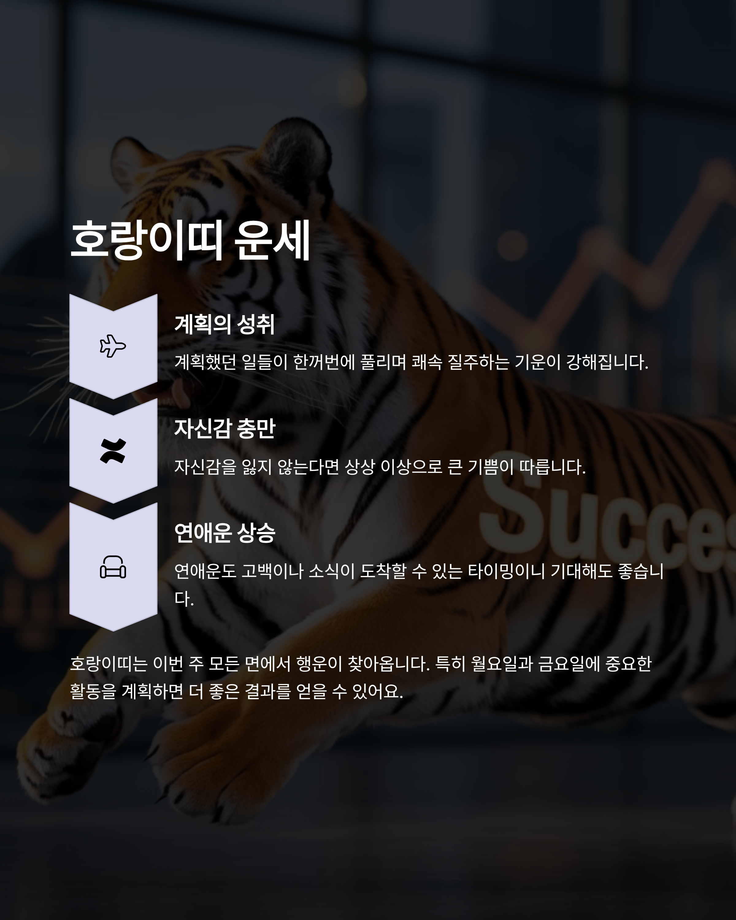계획의 성과, 연애운, 기회운이 모두 상승해