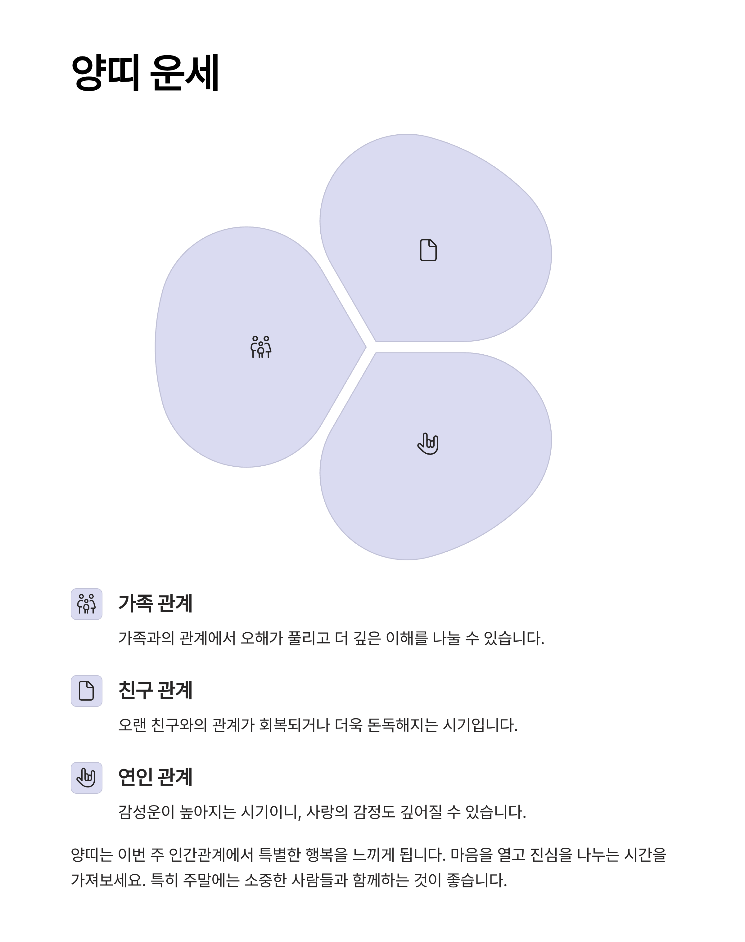 가족, 지인 등 가까운 사람들과의 관계에서 복이 따릅니다.