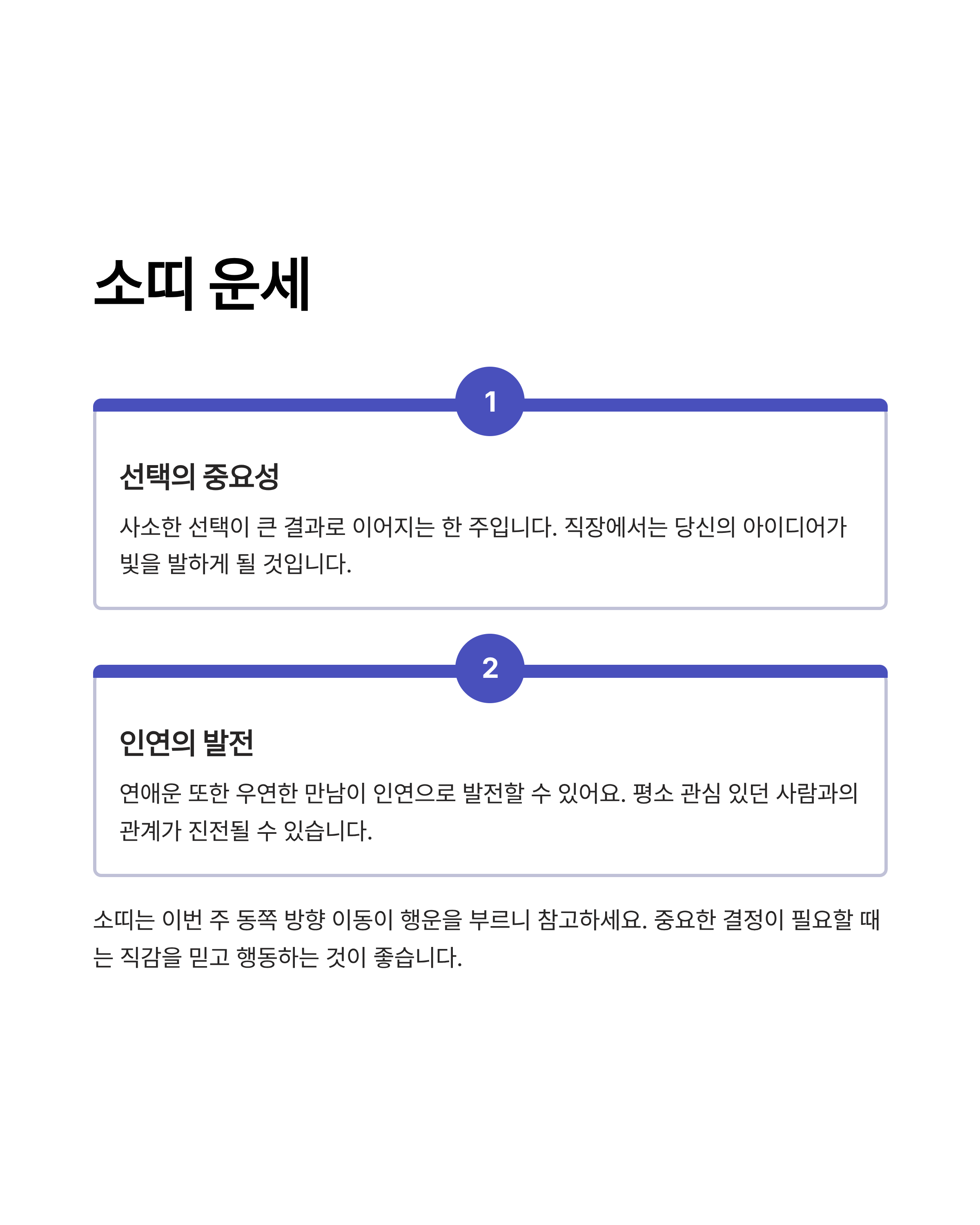 각 띠별로 크고 작은 행운이 다양하게 펼쳐질 수 있습니다.