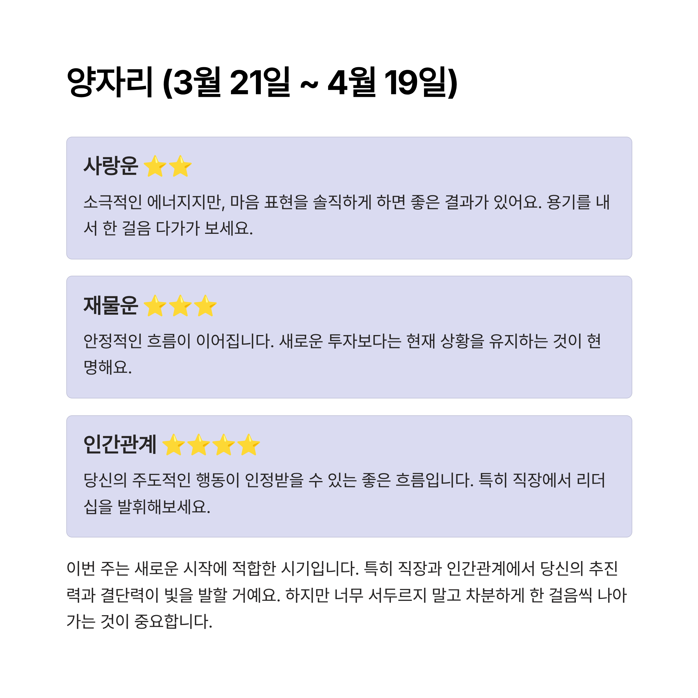 자신의 별자리와 생일을 기준으로 사랑운, 재물운, 일상운, 인간관계