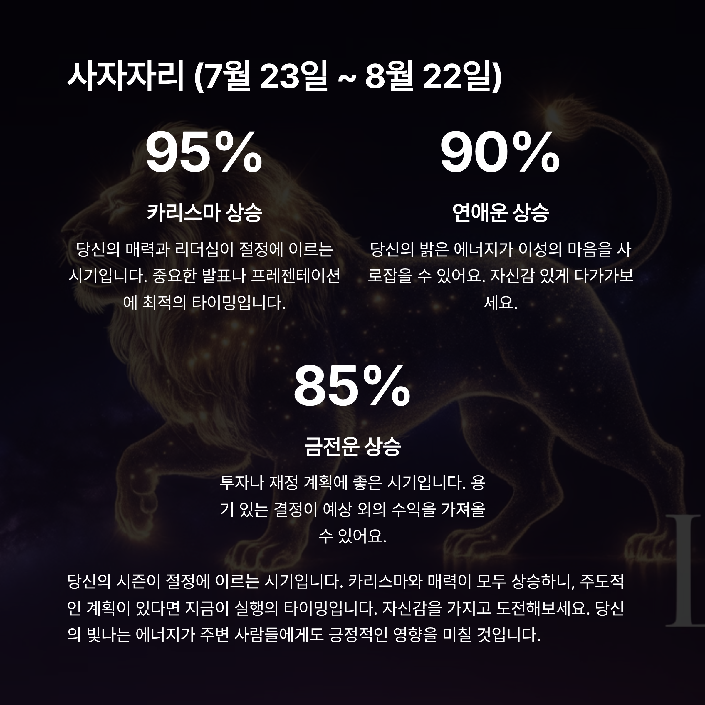 이번 주는 사자자리에게 빛의 스포트라이트가 집중되는 시기입니다.