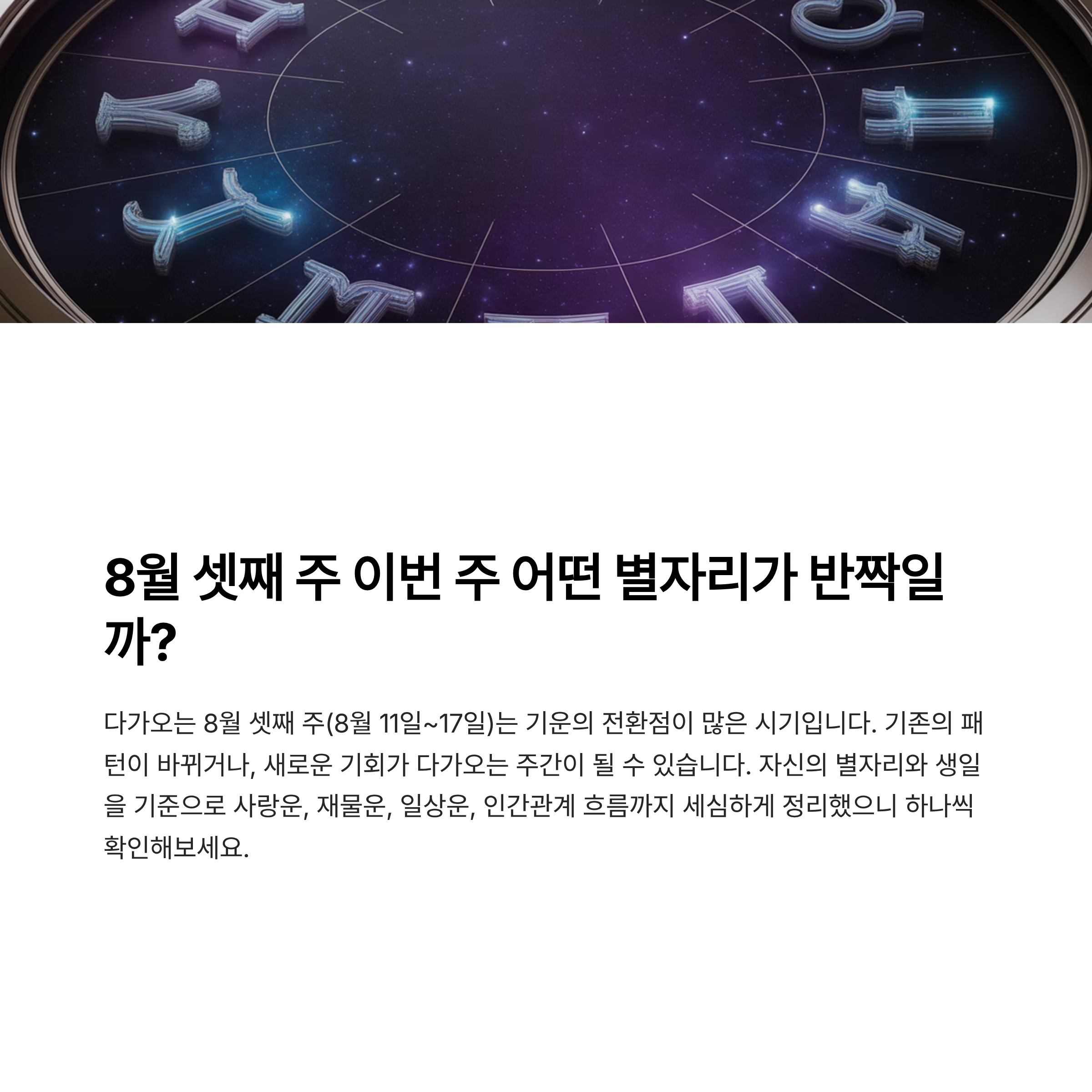 다가오는 8월 셋째 주(8월 11일~17일)는 기운의 전환점이 많은 시기입니다.