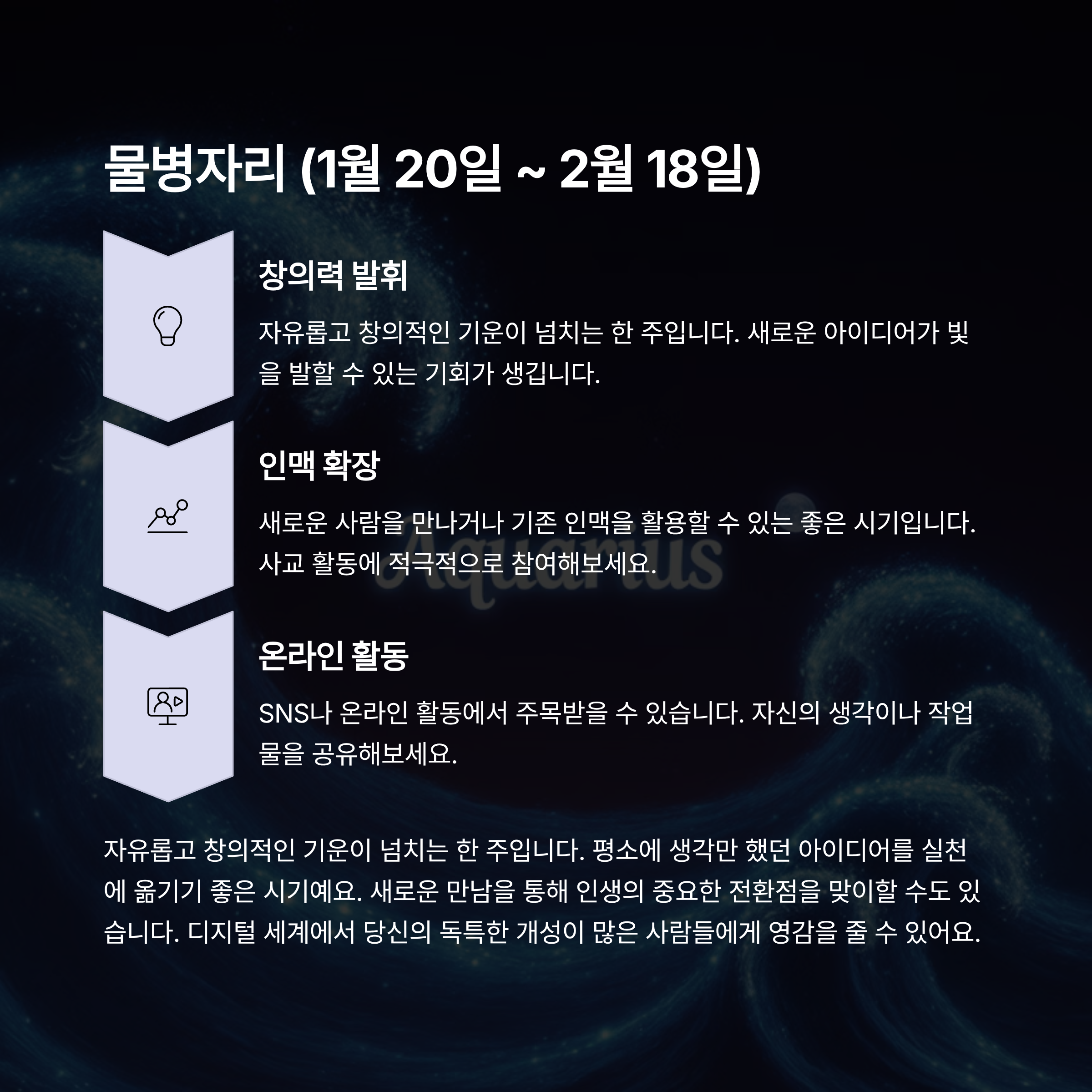 창의력과 매력, 인간관계 운이 상승하는 물병자리에게