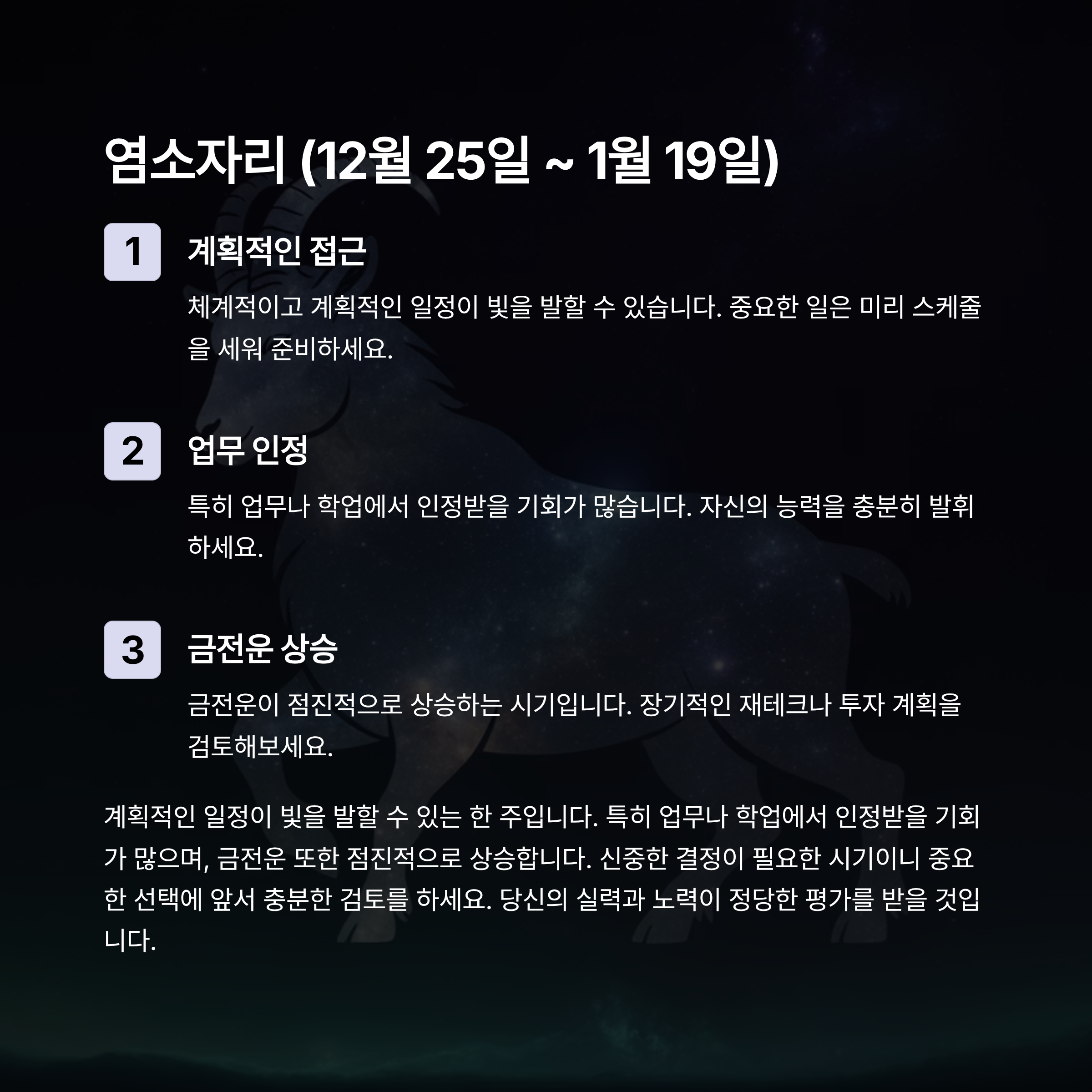염소자리 (12월 25일 ~ 1월 19일)