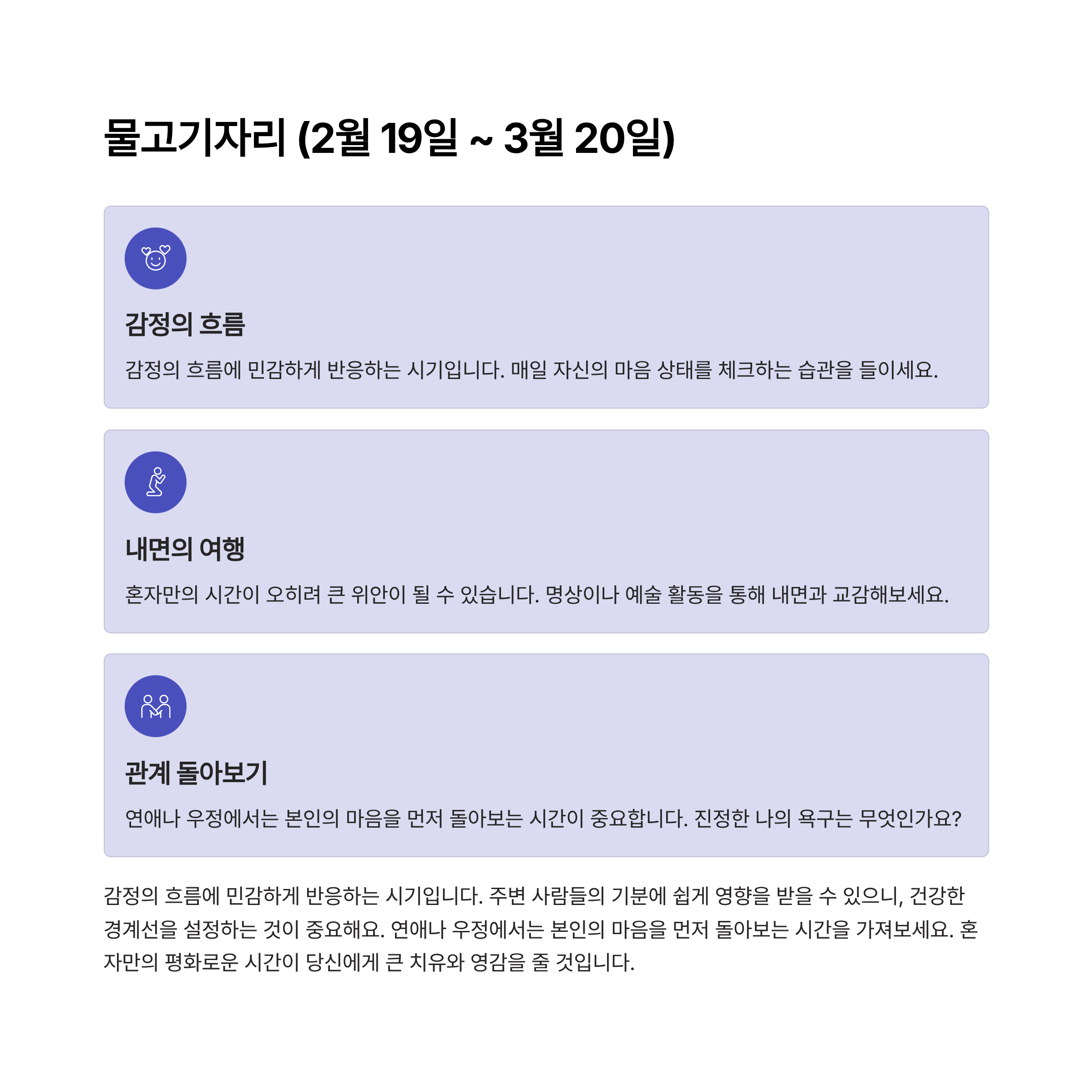 감정이 흐름에 민감하게 반응하는 시기입니다.