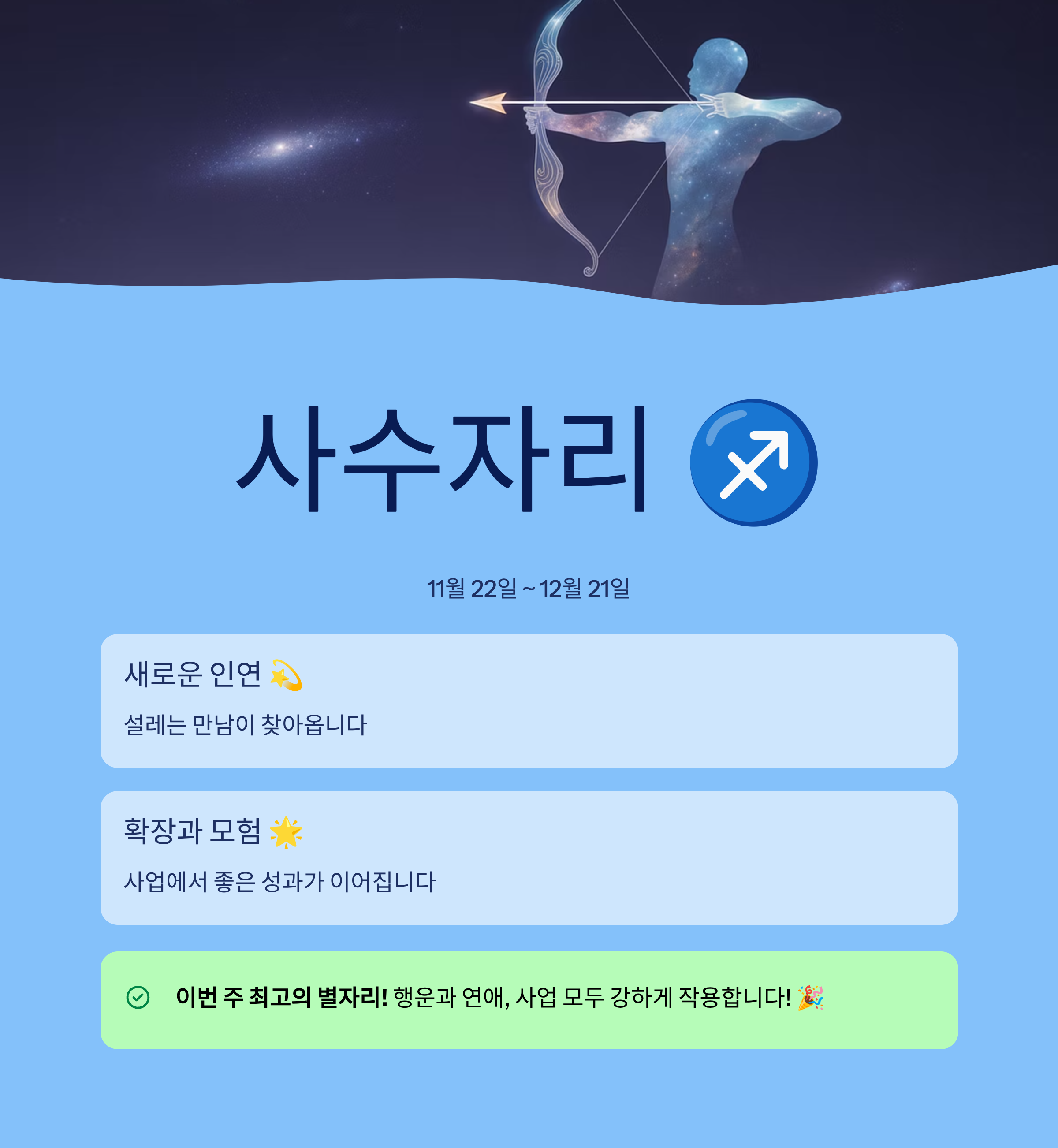 A4. 사수자리가 연애, 사업, 행운 모두에서 강세를 보입니다.